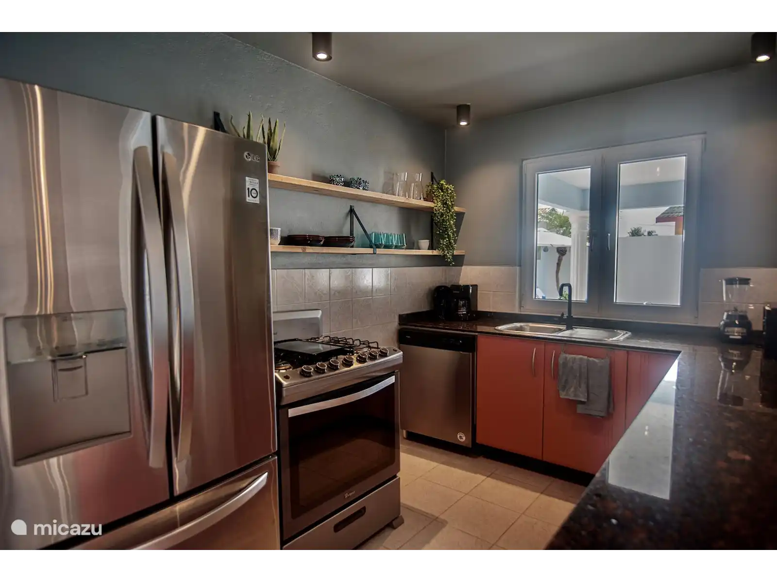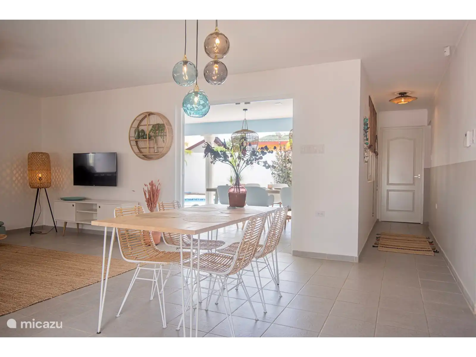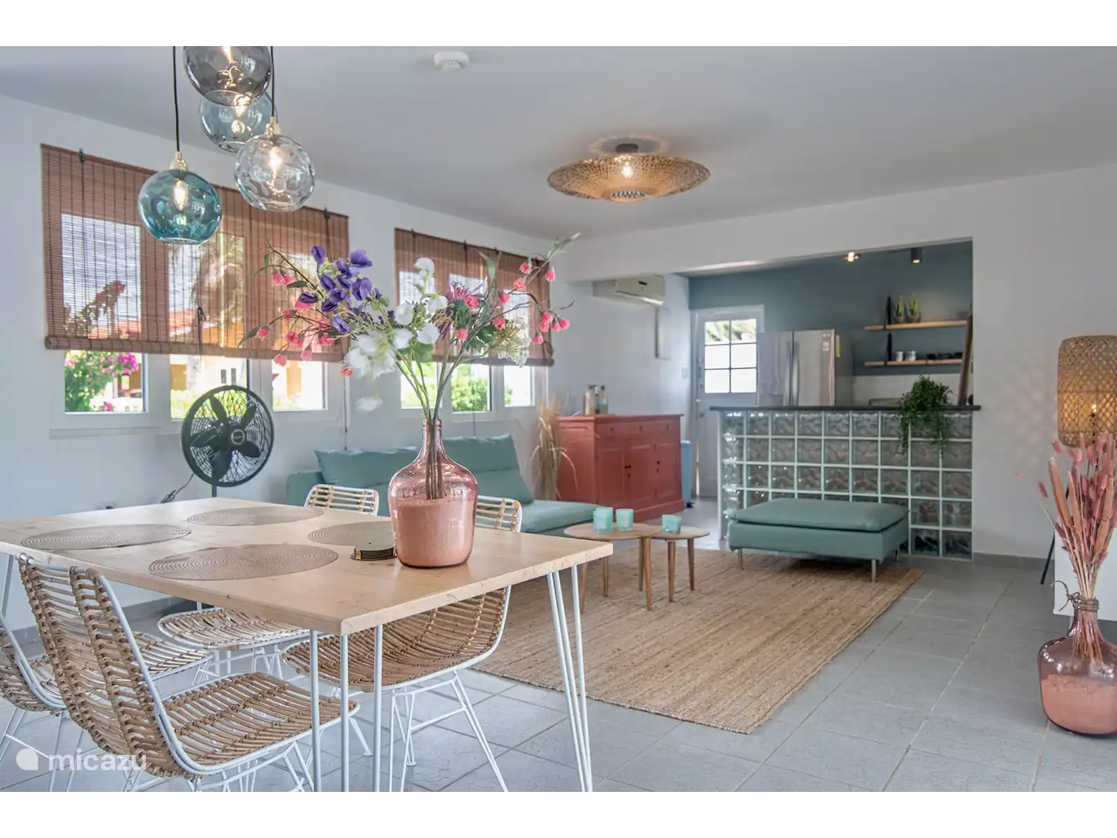 De sfeerfvolle woning ligt in een rustige woonwijk in Cumana, op ca. 5 minuten rijden van het centrum van Oranjestad en de airport. Voor het dichtstbijzijnde strand van Surfside Beach met diverse bars en restaurants hoef je maar een paar minuten te rijden. Hier ligt ook Barefoot, een van onze favoriete restaurants op Aruba. De stranden van Eagle Beach en Palm Beach liggen op ca. 10 minuten rijden. Op loopafstand ligt een grote CMart supermarkt met zeer uitgebreid assortiment en vers afdelingen.