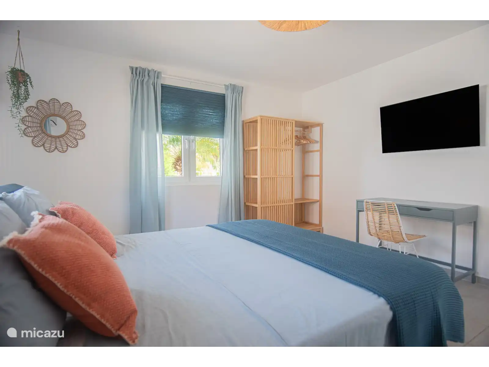 Er zijn drie slaapkamers met twee Kingsize boxspring bedden en een Queensize boxspring. De slaapkamers zijn allen voorzien van airconditioning en Smart-tv (o.a. voor gebruik Netflix, Prime Video, YouTube en overige internet kanalen). De main slaapkamer heeft een ruime walk in closet. Twee slaapkamers hebben een bureau. Er zijn twee badkamers. Beide badkamers hebben een inloopdouche, toilet en wastafel (een keer dubbele en een keer enkel). Beide douches zijn voorzien van warm water. Ook is er een haarfohn.