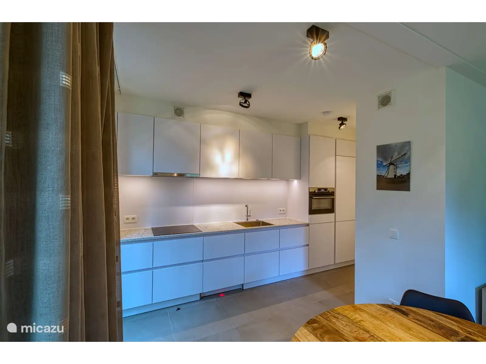Een nieuwe keuken met inductie, oven, Dolce Gusto, waterkoker, frigo en diepvries.