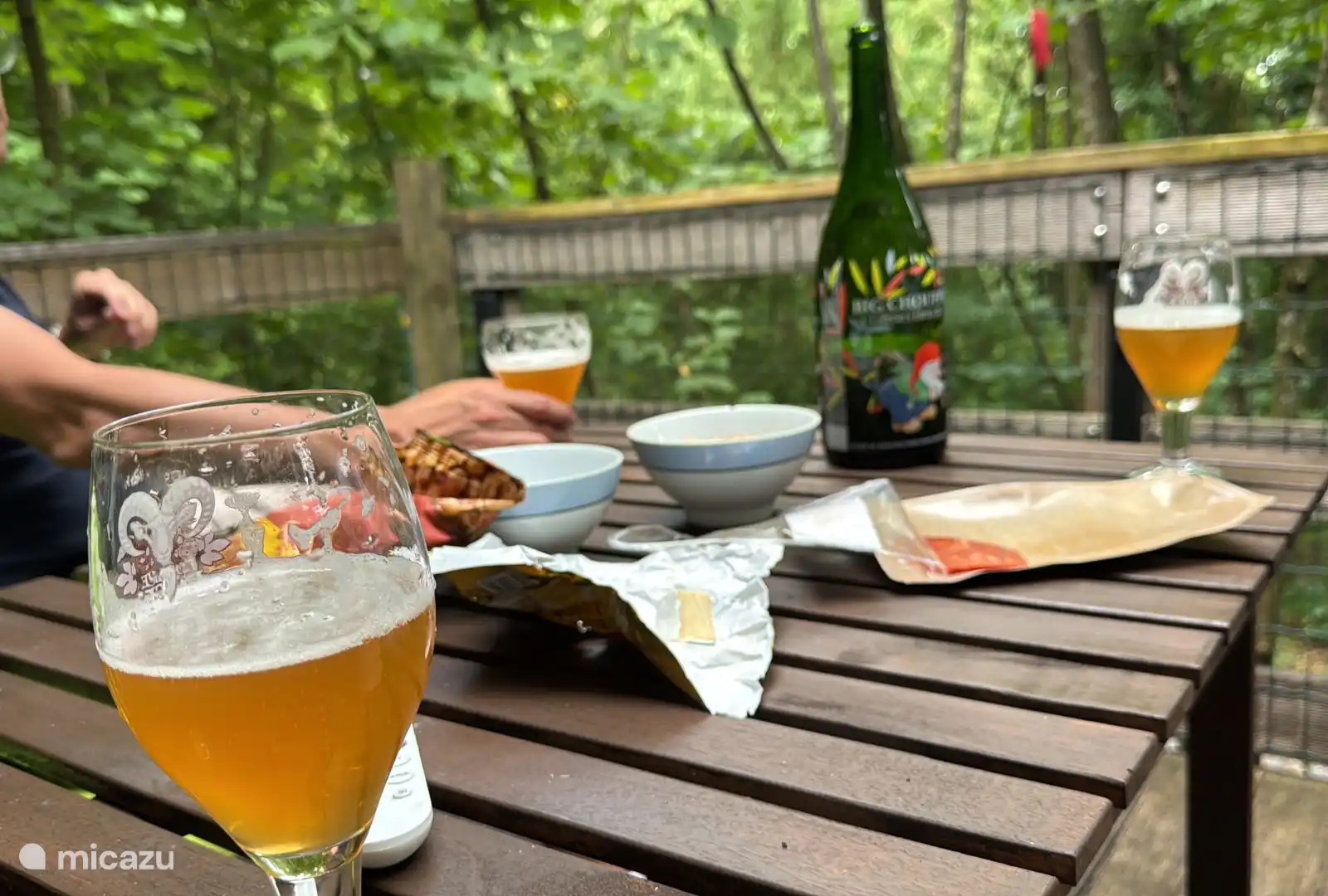 Er zijn vijf slaapplaatsen verdeeld over twee slaapkamers en een overloop, zodat iedereen zijn eigen plekje heeft. Ook je huisdier is van harte welkom, zodat het hele gezin mee kan genieten van het avontuur. Buiten kun je ontspannen op het balkon met tuinmeubilair en parasol, omringd door groen en stilte. Of je nu komt voor wandelingen, quality time of gewoon rust — wij zorgen dat je je meteen thuis voelt.