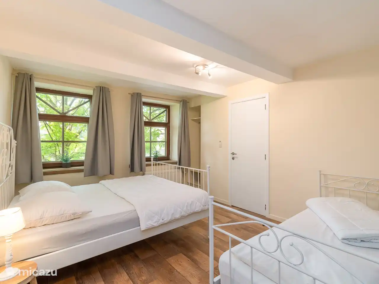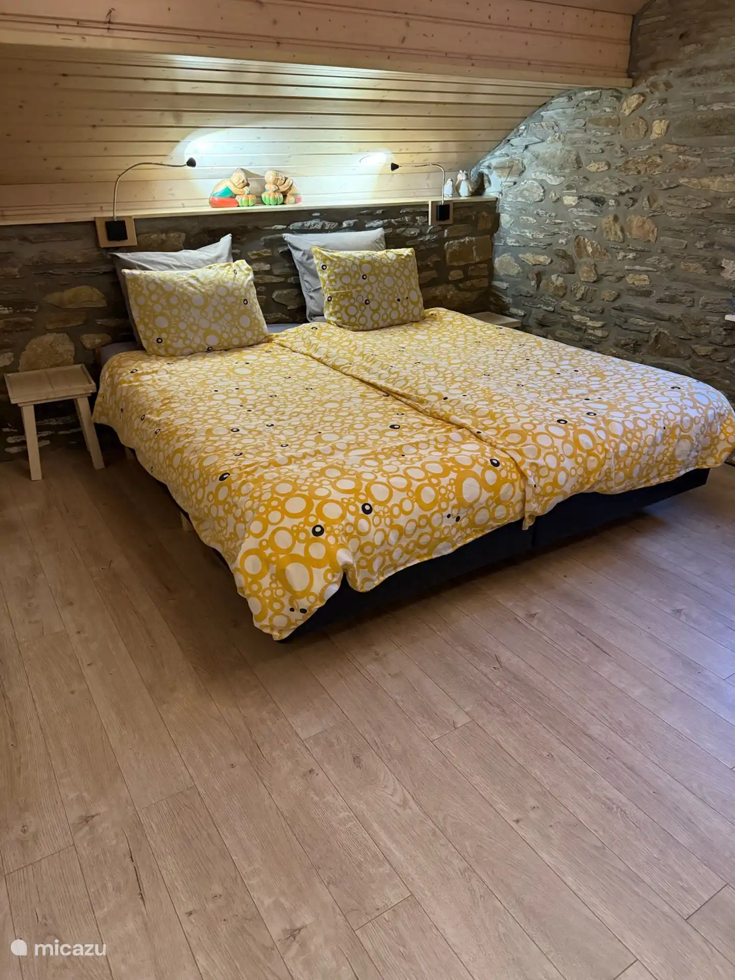 Boven 1 slaapkamer, met 2 x 1 pers boxspring bedden, deze zijn  voorzien van bedlinnen + handdoeken. Badkamer is aangrenzend de slaapkamer. Babybedje + kinderstoel mogelijk op aanvraag. Even kan er voor een 3 persoon een 3 (goed opklapbed) bed bijgezet worden.