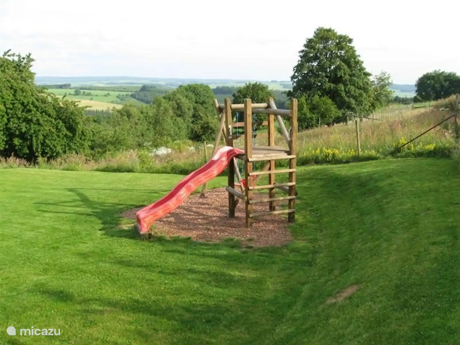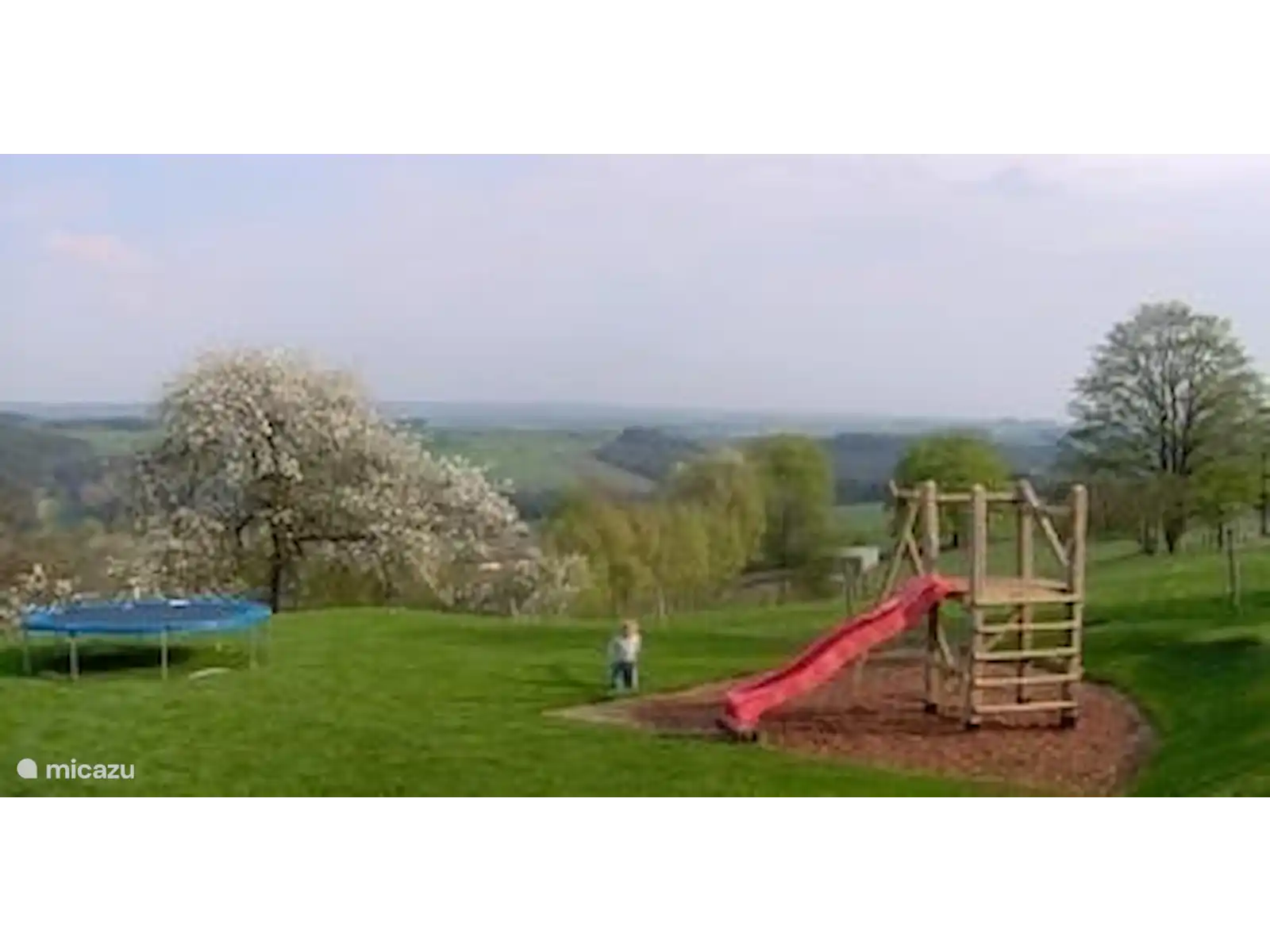 Aard van de tuin Op het grasveld bij het terras vind u speeltoestellen en een trampoline. Een groot speelveld van 400 m2 is aanwezig.
