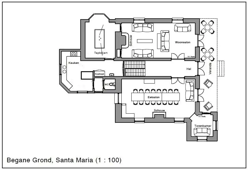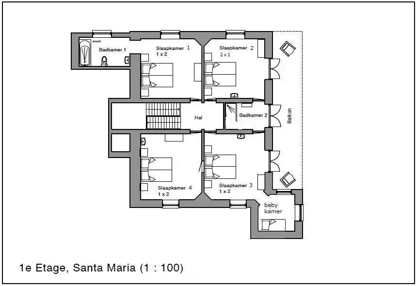 De villa is in 2004 geheel gerenoveerd en voorzien van nieuw sanitair en een nieuwe keuken. De villa heeft zoveel mogelijk de oude stijl behouden en is sfeervol en luxueus ingericht, iedere kamer heeft zijn eigen stijlvolle kleurstellingen. In totaal heeft de villa 1 keuken, 4 badkamers, 8 slaapkamers (waarvan 7 met eigen wastafel) voor groepen tot 15 personen. Totaal woonoppervlak 350 m². Tevens beschikt de villa over gratis draadloos internet.