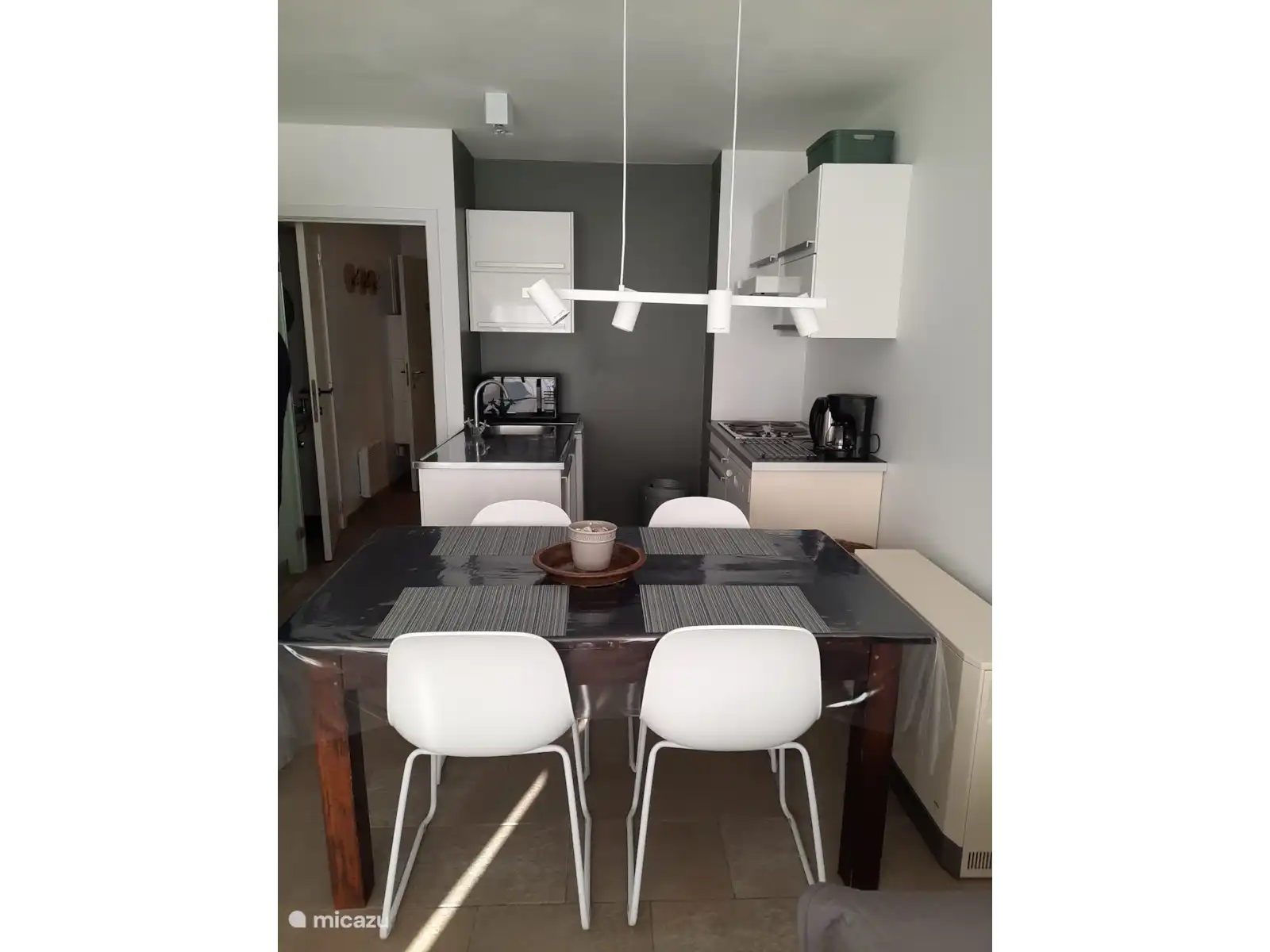 Je kan de auto parkeren vlak achter het appartement  op een privé staanplaats.
