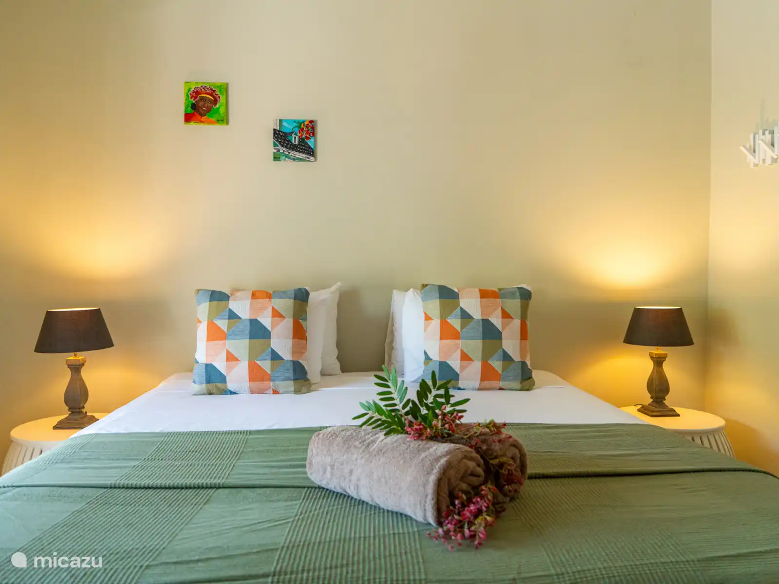 De hoofdslaapkamer is aan de voorzijde van het huis gelegen en heeft dubbele openslaande deuren naar de porch. De en-suite badkamer is volledig uitgerust met wastafel, douche en toilet.