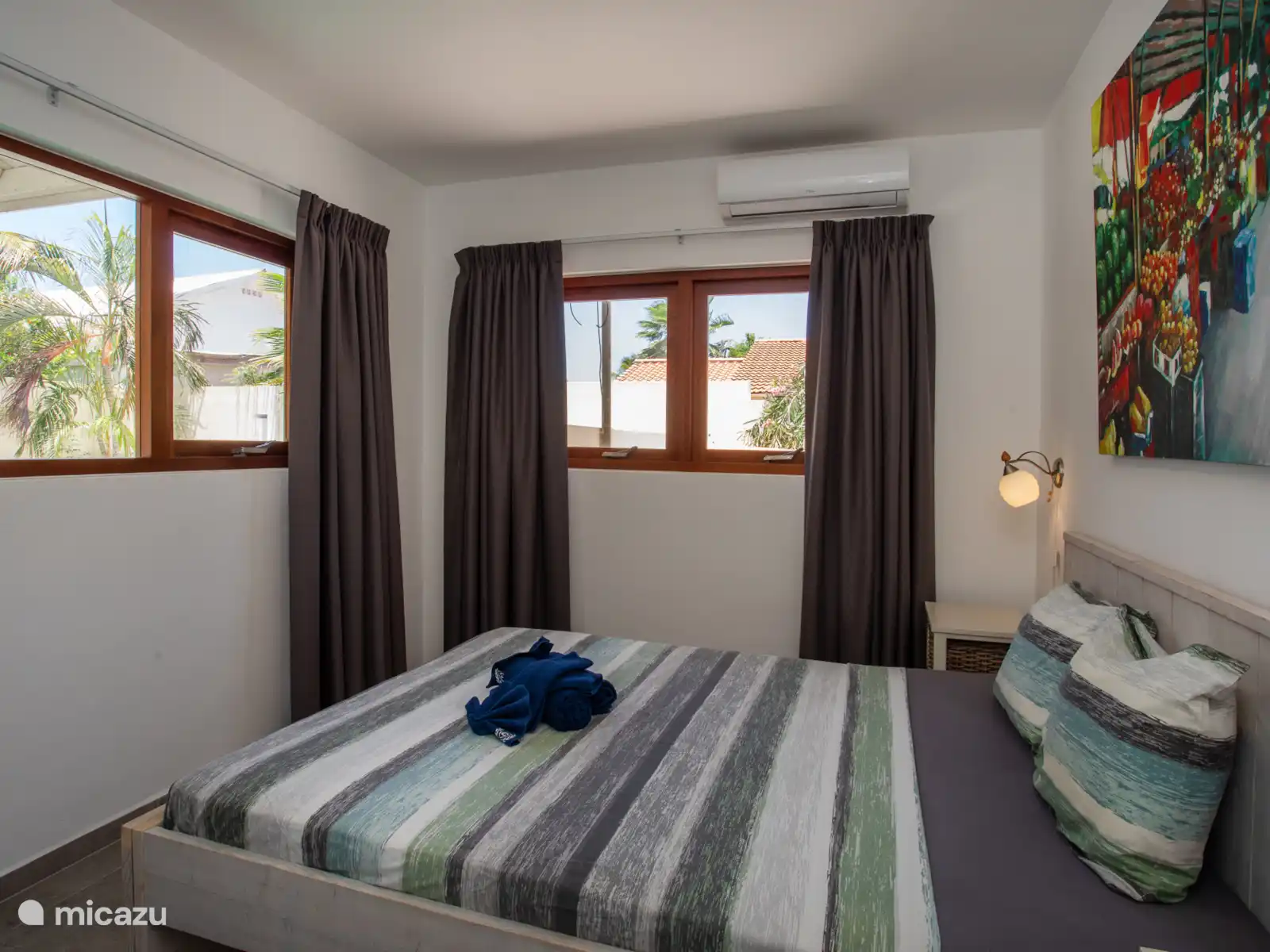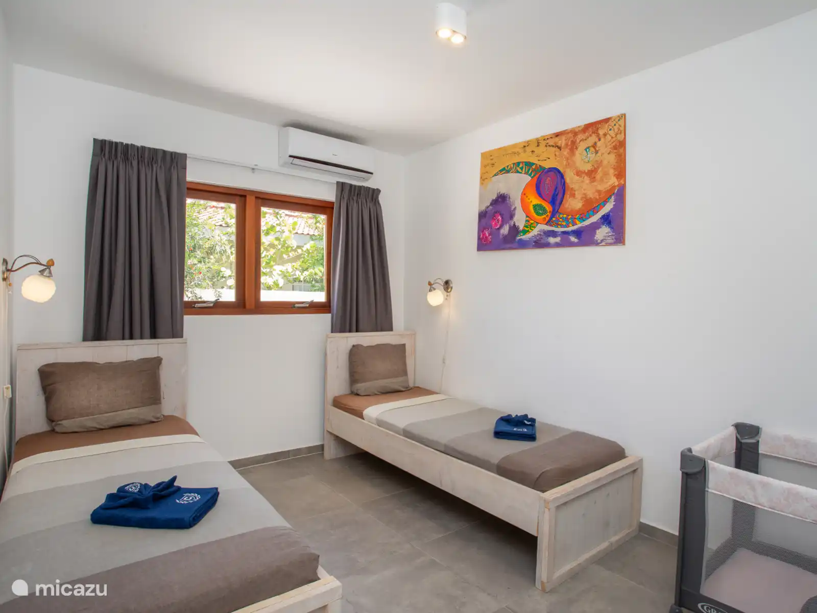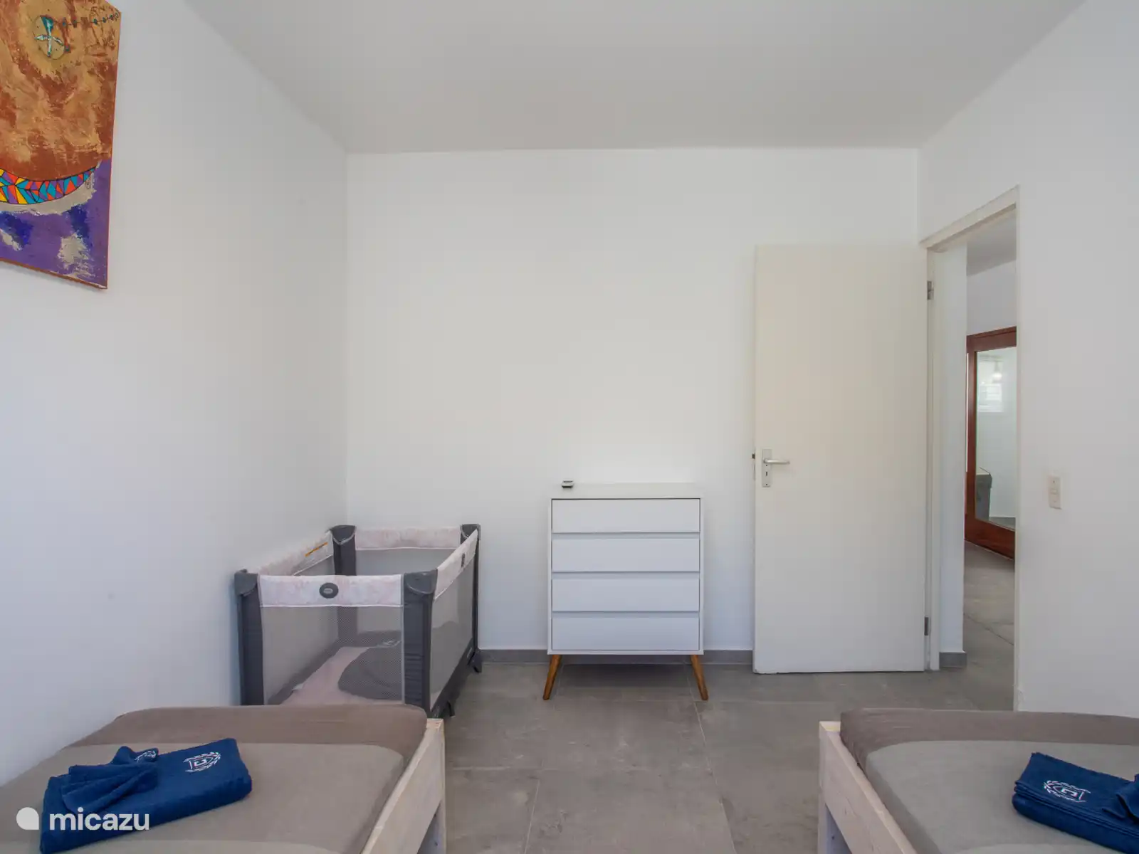 Vanuit de woonkamer heeft u toegang tot de drie slaapkamers. Alle slaapkamers zijn voorzien van airco. De master bedroom heeft een eigen badkamer. Twee slaapkamers zijn uitgevoerd met een twee persoons bed en in de derde slaapkamer zijn twee eenpersoonsbedden geplaatst. Tevens bevat deze kamer een extra kinderbedje. Kinderstoel is aanwezig.