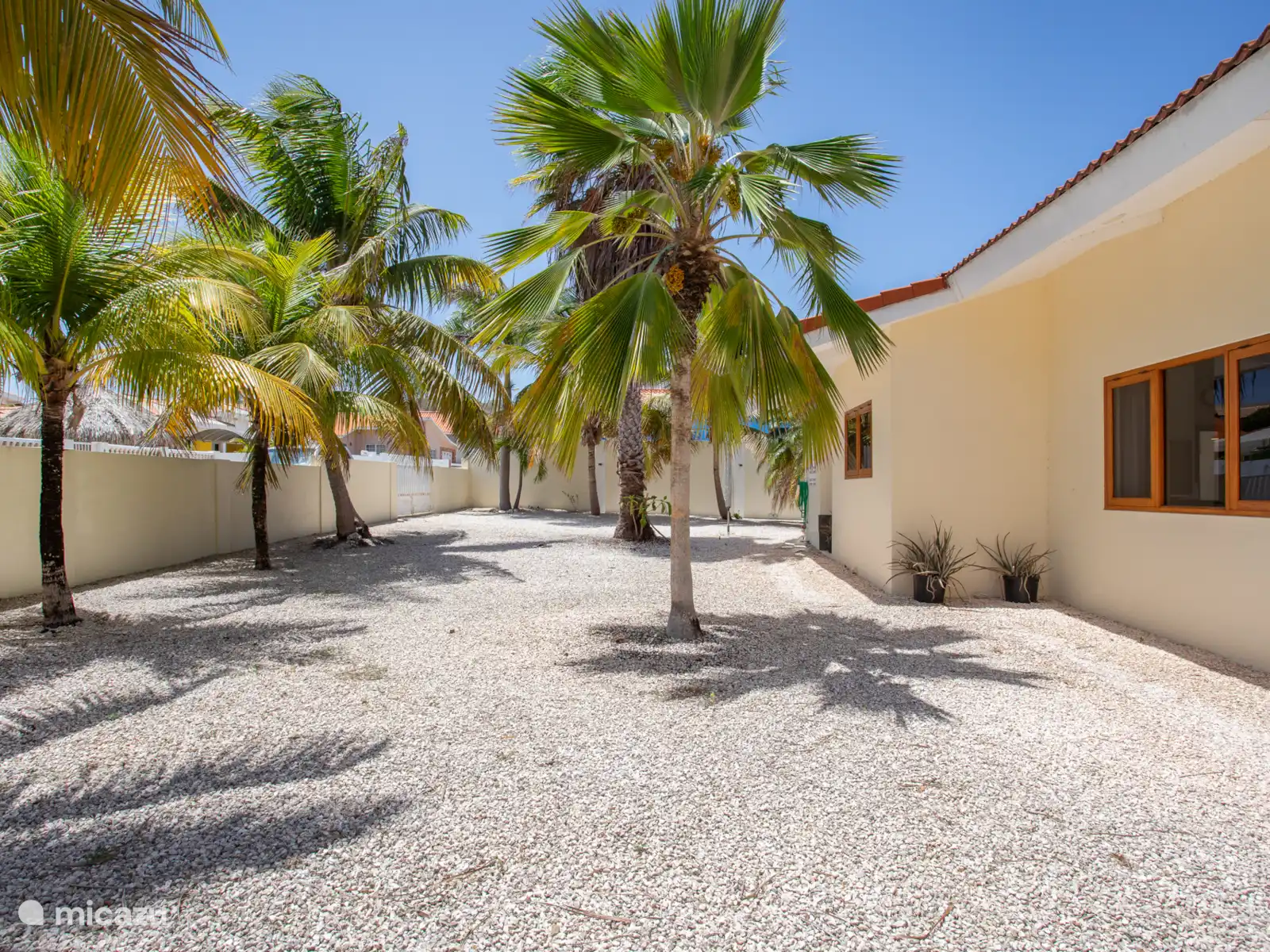De vakantiewoning is vrijstaand met een zeer grote tuin van bijna 700m2 met palmbomen. Op enkele minuten rijden bevinden zich verschillende supermarkten, een wasserette, een apotheek en eetgelegenheden.