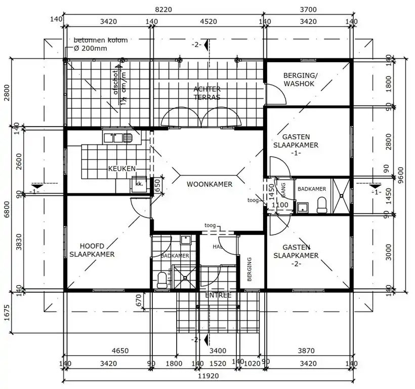 • 2 badkamers met douche (warm water), toilet en wastafel