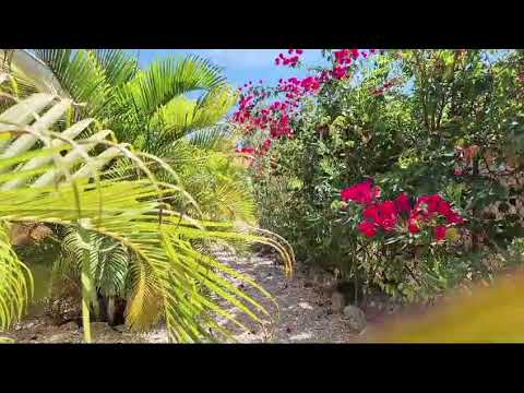 Buitenruimte is heerlijk, de porch op de wind met gezellige grote eettafel, lekkere loungebank en grote gas-BBQ. De tuin is aangelegd in '21, de palapa en buitendouche staan nog niet op alle foto's. Alles is superhard gegroeid, er is veel privacy! Mooie grote tropische planten, bloemen, (palm)bomen en véél vogeltjes.