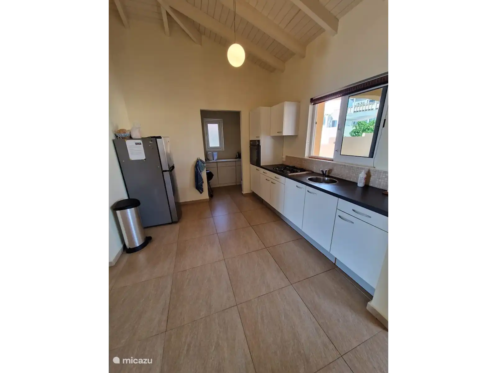 Ondanks dat het leven op Curacao zich voornamelijk buiten afspeelt, is de ruime woonkamer compleet ingericht met alle benodigdheden o.a.flatscreen tv met kabeltelevisie.