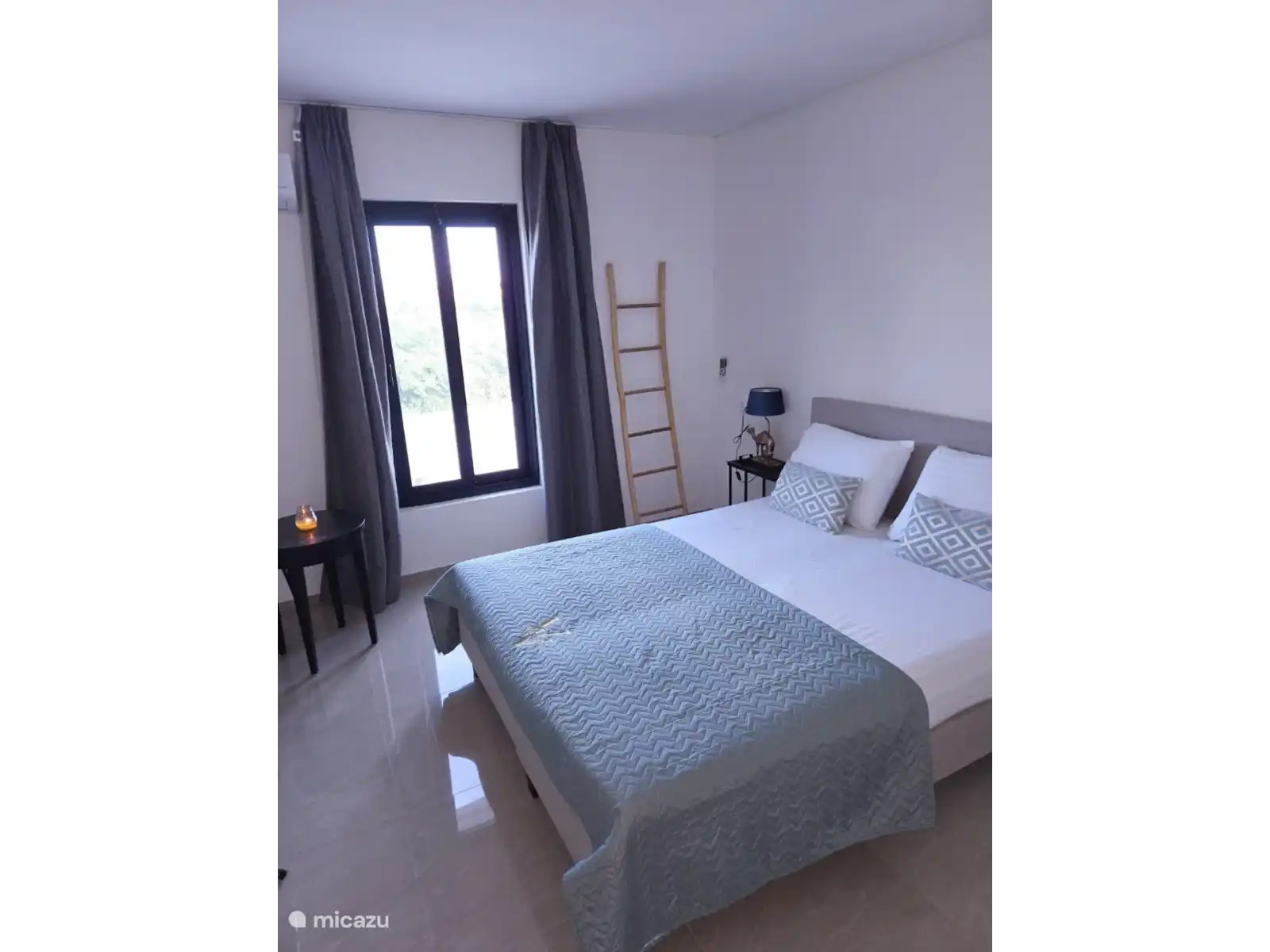 De master bedroom heeft een kingsize bed van 180 cm breed en 210 cm lang. Aangrenzend aan de kamer is een walk in closet met dubbele wastafel, via deze kamer komt u in de badkamer ensuite.