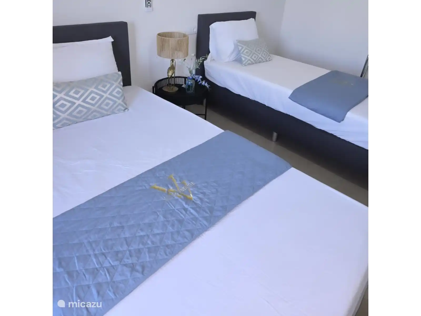 Er zijn drie ruime slaapkamers waarvan alle drie voorzien zijn van luxe boxspringbedden en airconditioning om u een aangename nachtrust te bezorgen. Ook zijn in alle kamers een kofferrek en kledingrek aanwezig. Tevens kunt u op de kamer aan een tafeltje zitten met eventueel een goed boek. Er is op alle kamers een zithoekje.