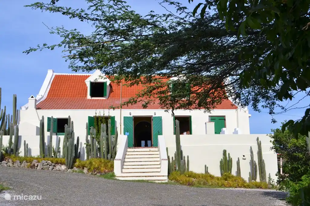 Tegenover de studio’s ligt een grote buitenkeuken met een schaduwrijke veranda. Een beschutte plek waar de wind altijd verkoelt en het zalig verblijven is. De buitenkeuken is compleet ingericht met fornuis, grillplaat, french-press, waterkoker, blender enz. Rondom de keuken staan barzitjes en er is een grote tafel, uitnodigend tot lang en gezellig eten.