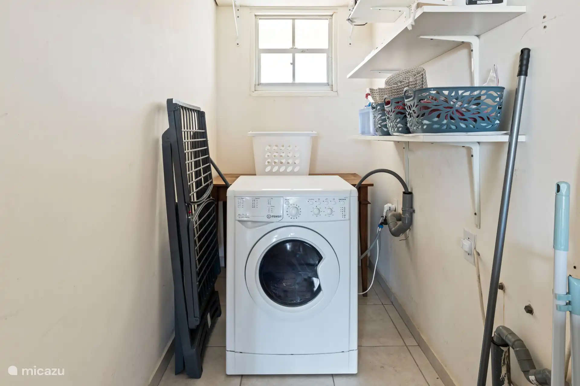 Binnen vindt u alles wat u nodig heeft voor een zorgeloos verblijf: beddengoed en linnengoed zijn inbegrepen, en er is een wasmachine aanwezig. De moderne keuken beschikt over een ruime koelkast met vriesvak, ideaal voor langere verblijven. Ook is er airco in de woonkamer aanwezig.