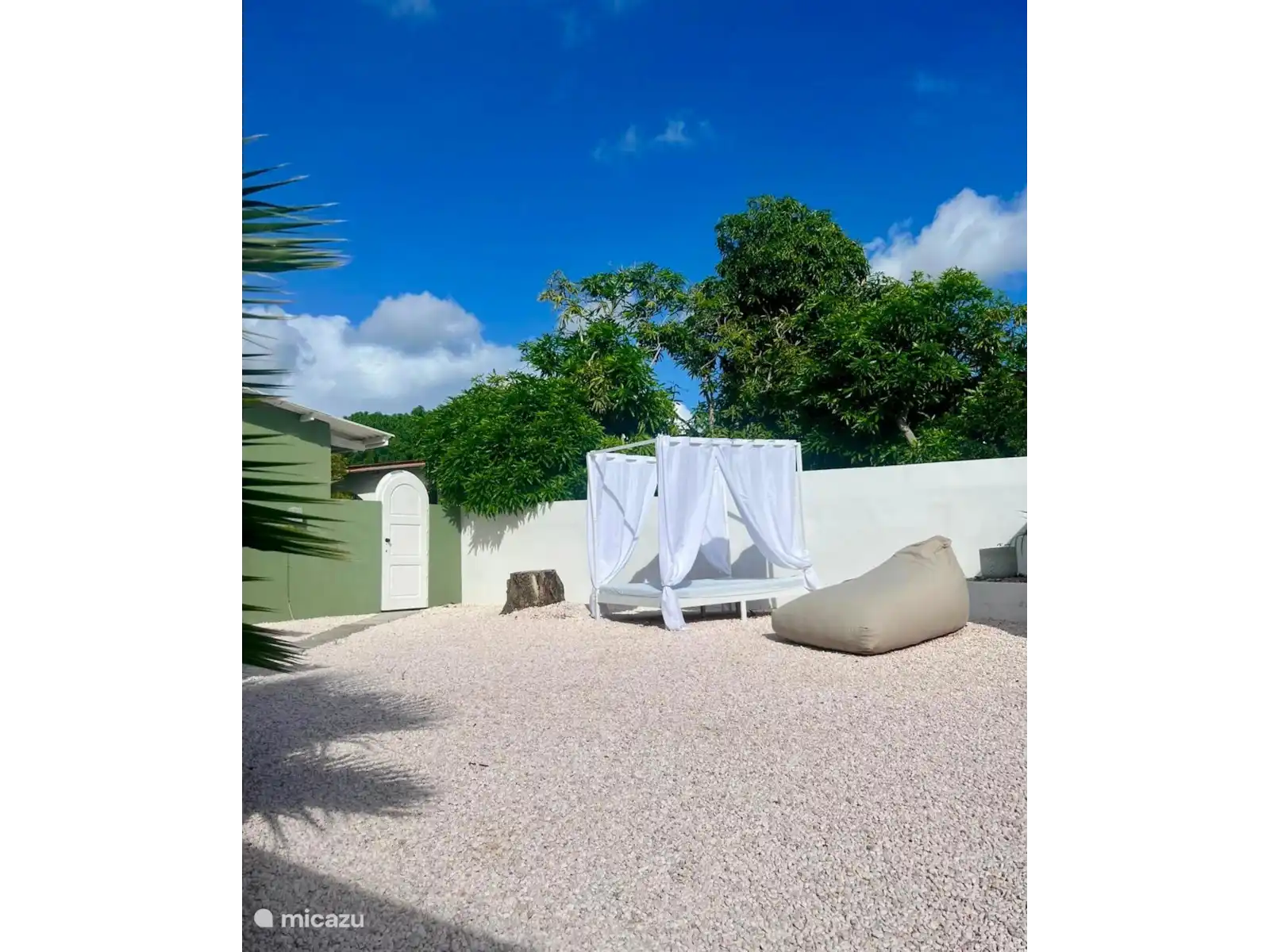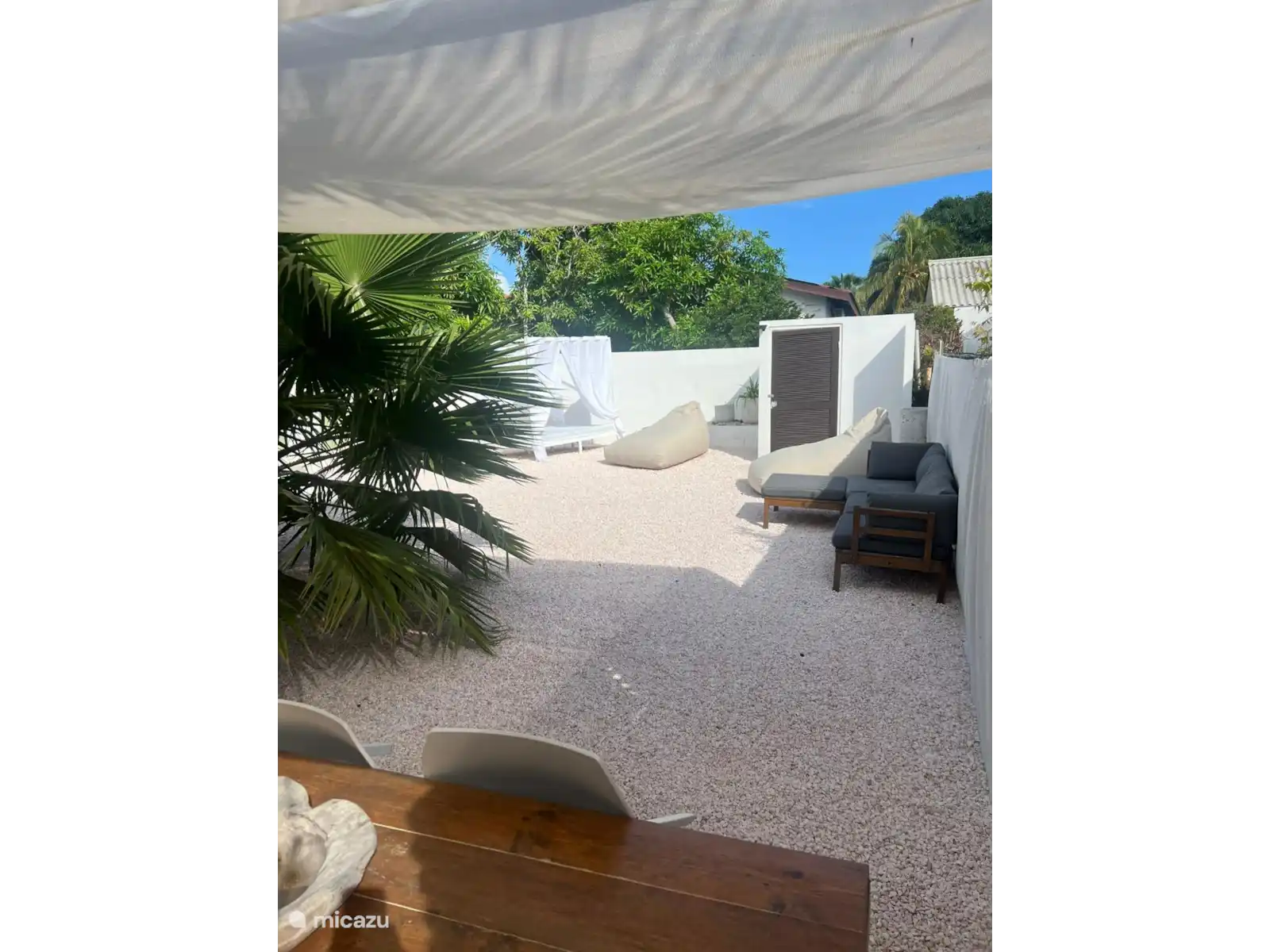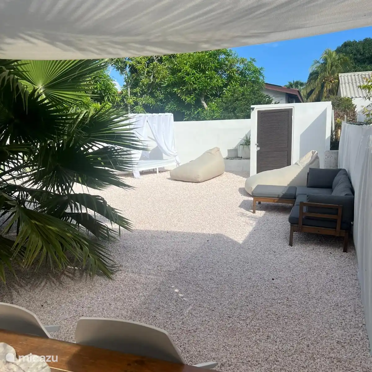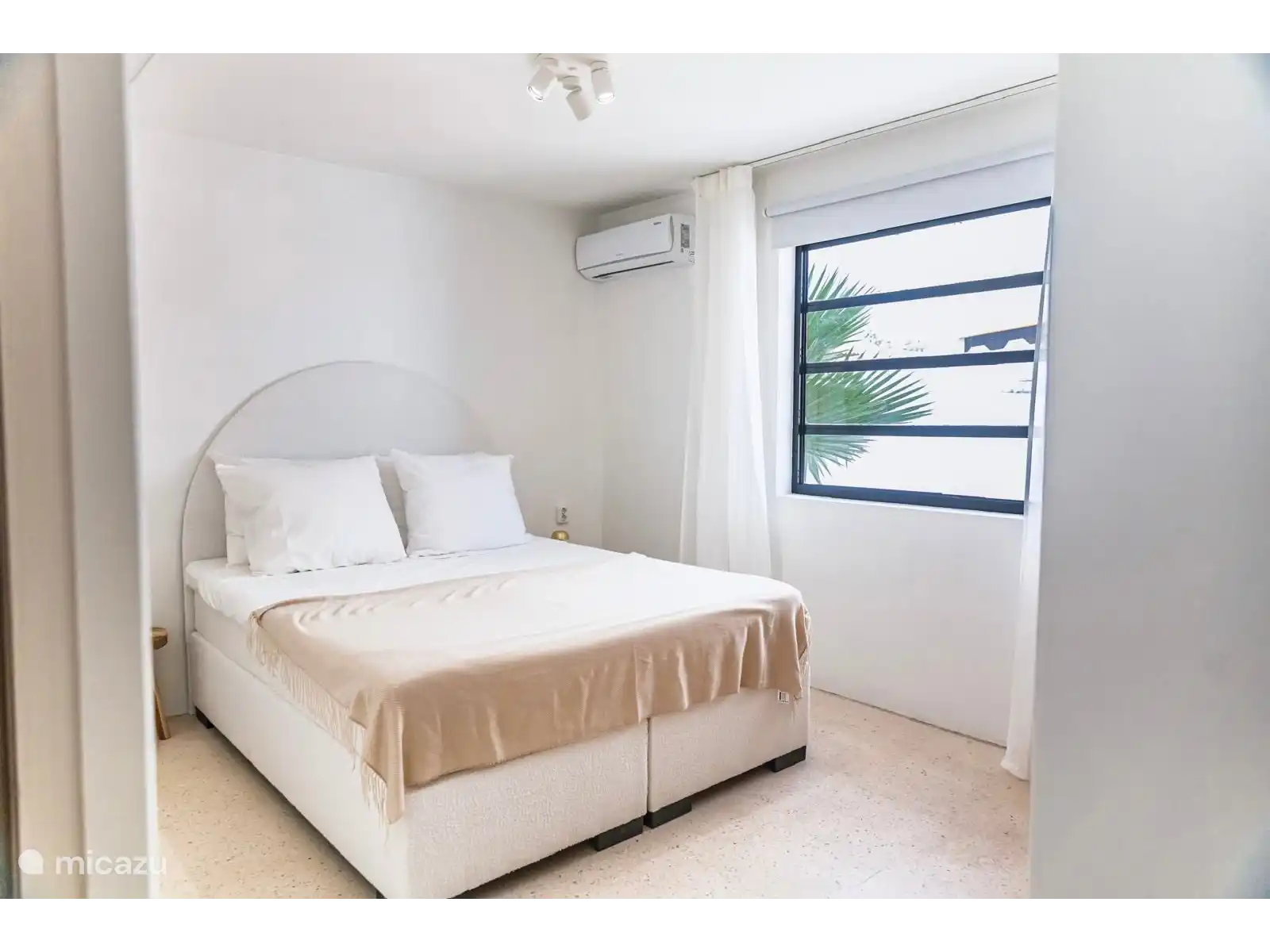 Het appartement bestaat uit een ruime keuken en sfeervolle woonkamer met plafond ventilator en smart tv die aansluit op een overdekt zitje. Daarnaast heeft het appartement een privé tuin waarin u heerlijk kunt genieten van de zon of een plekje in de schaduw. De keuken is uitgerust met benodigde apparatuur, een Amerikaanse koelkast en een gezellige eetbar. Daarnaast heeft het appartement 2 slaapkamers. De master bedroom heeft een comfortabele Queensize boxspring, pillow menu en airconditioning, zodat u altijd kunt genieten van een aangename temperatuur. In de tweede slaapkamer bevindt zich een boxspring die, indien gewenst, in twee losse bedden kan worden gesplitst en is ook uitgerust met airconditioning. De badkamer heeft een regendouche (warm en koud water), toilet en wastafelmeubel. Door het gehele appartement bevinden zich zowel 110v als 220v stopcontacten.