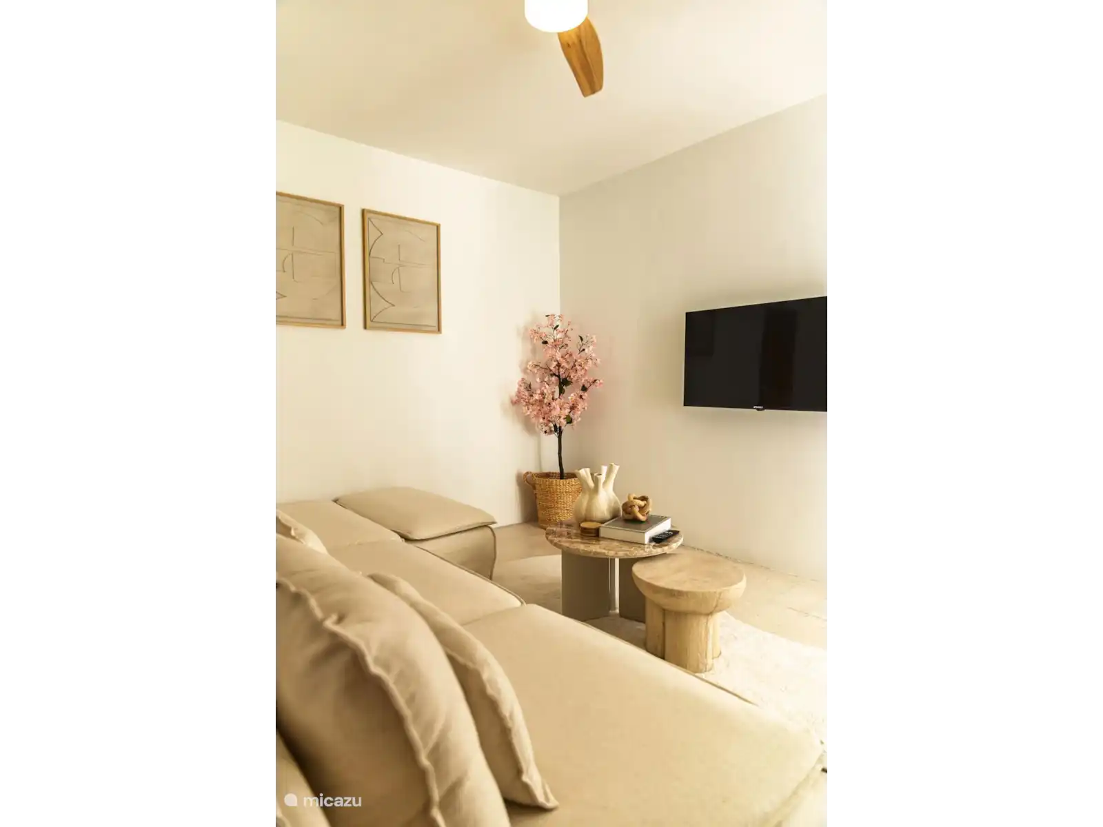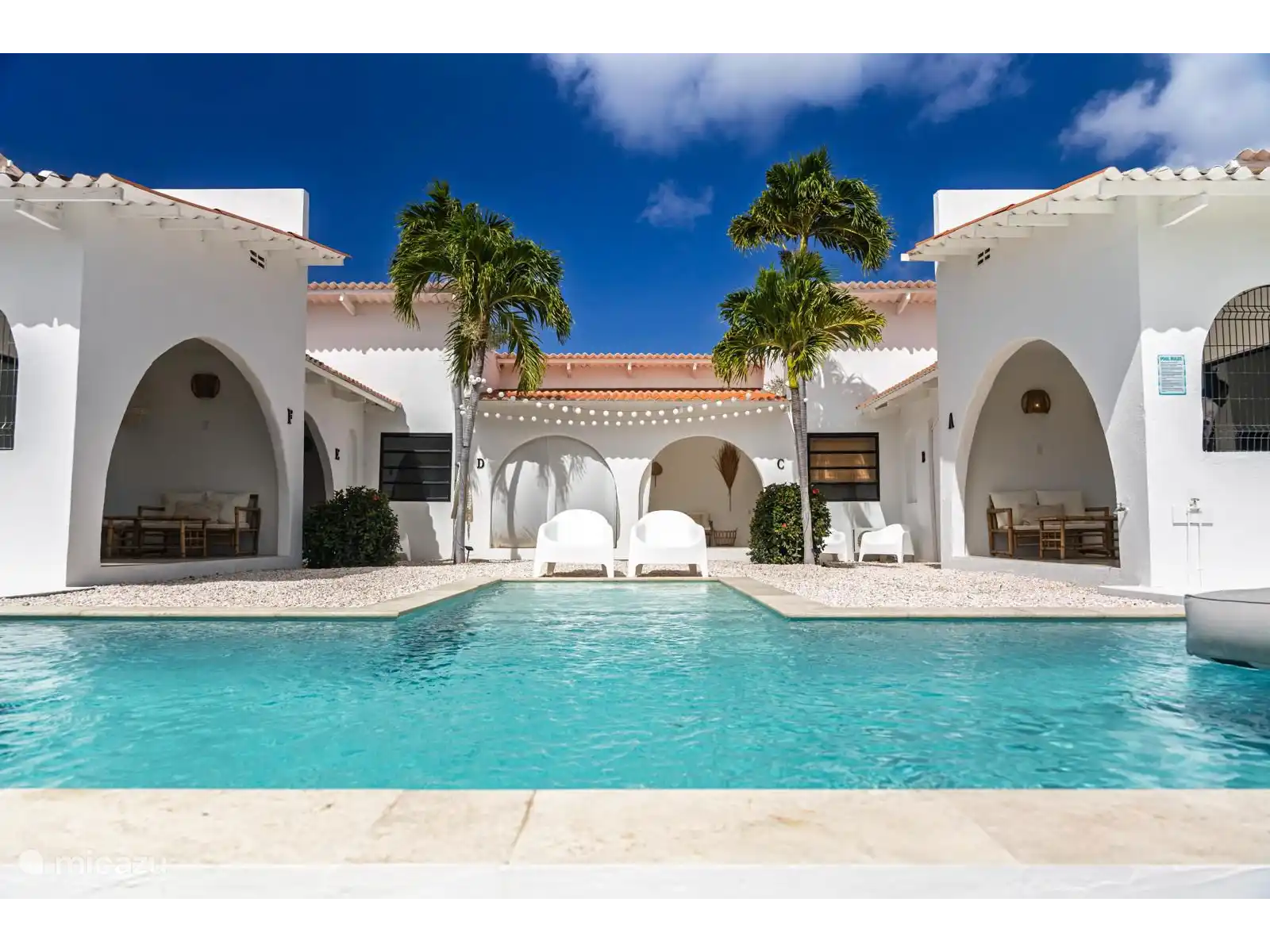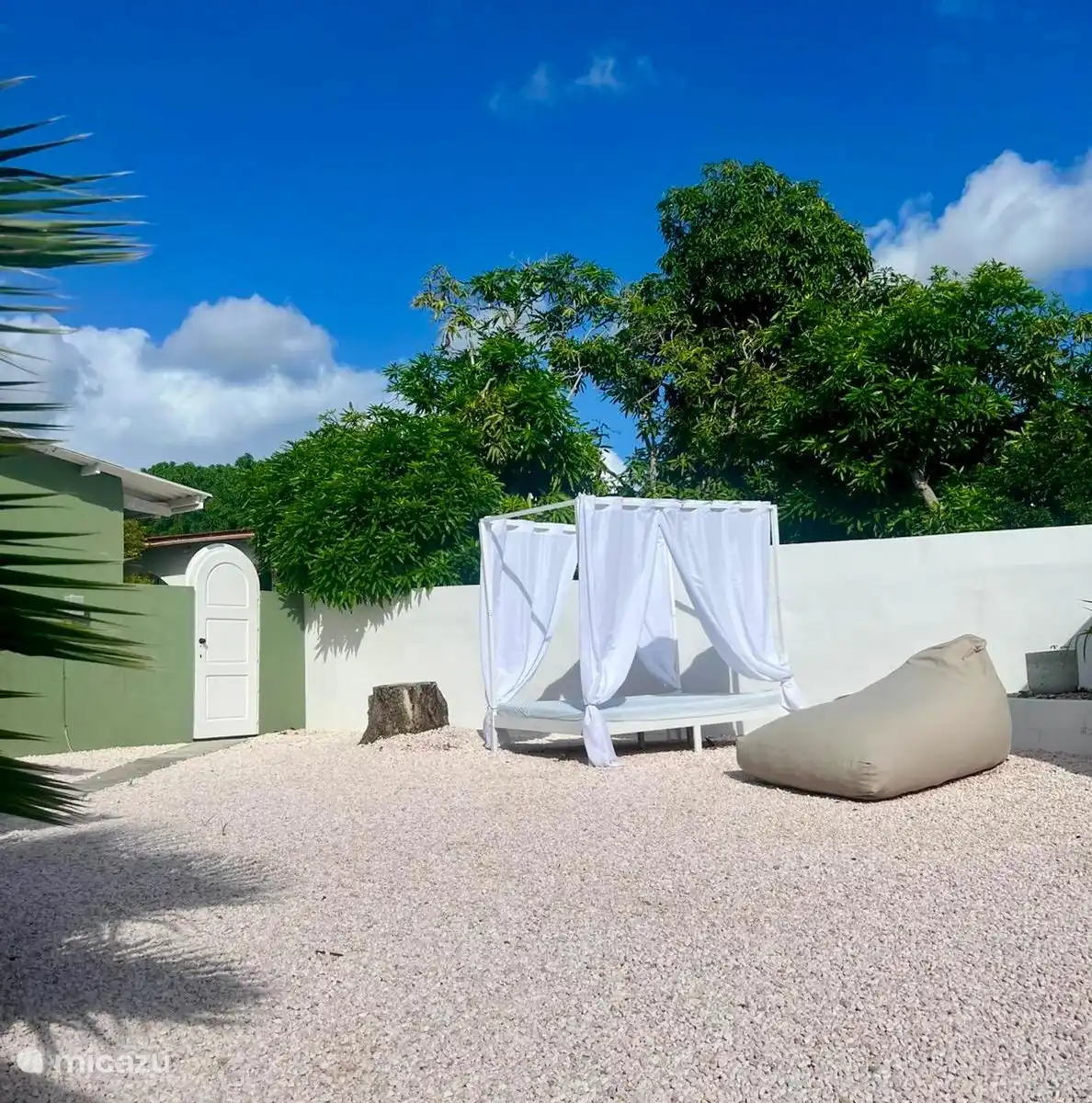 Het appartement bestaat uit een ruime keuken en sfeervolle woonkamer met plafond ventilator en smart tv die aansluit op een overdekt zitje. Daarnaast heeft het appartement een privé tuin waarin u heerlijk kunt genieten van de zon of een plekje in de schaduw. De keuken is uitgerust met benodigde apparatuur, een Amerikaanse koelkast en een gezellige eetbar. Daarnaast heeft het appartement 2 slaapkamers. De master bedroom heeft een comfortabele Queensize boxspring, pillow menu en airconditioning, zodat u altijd kunt genieten van een aangename temperatuur. In de tweede slaapkamer bevindt zich een boxspring die, indien gewenst, in twee losse bedden kan worden gesplitst en is ook uitgerust met airconditioning. De badkamer heeft een regendouche (warm en koud water), toilet en wastafelmeubel. Door het gehele appartement bevinden zich zowel 110v als 220v stopcontacten.