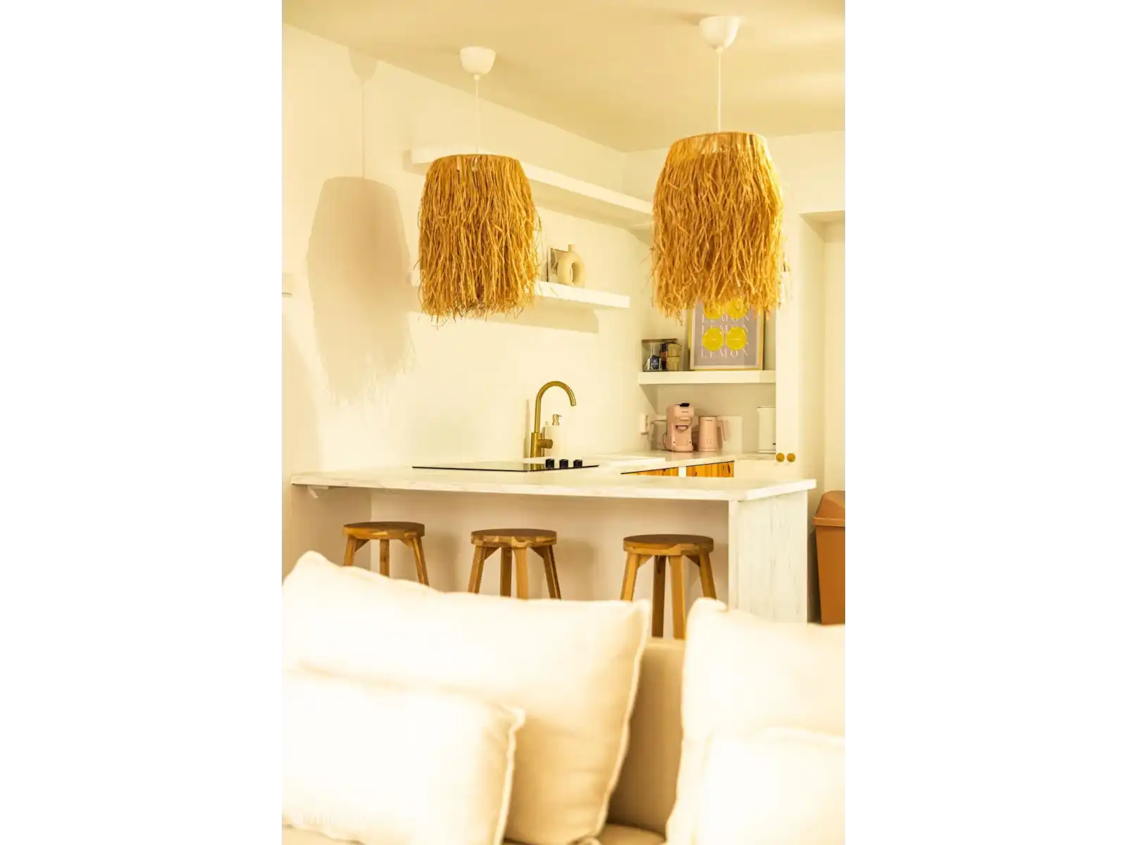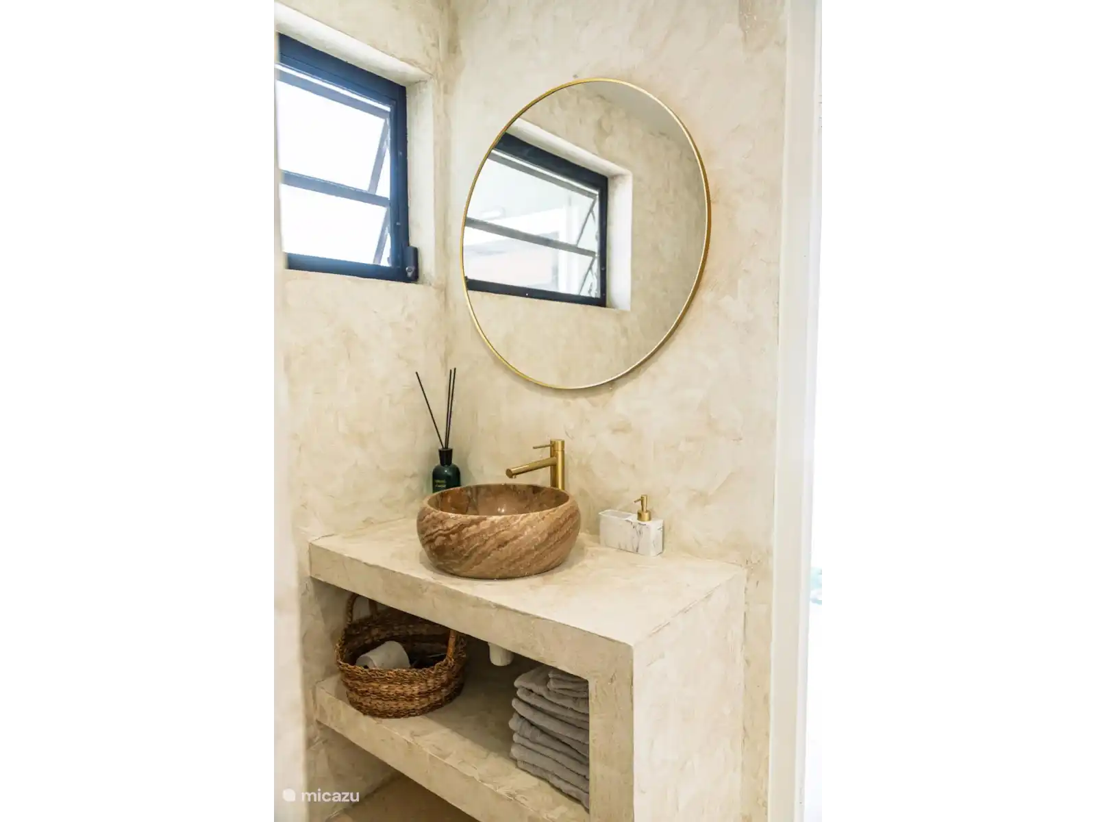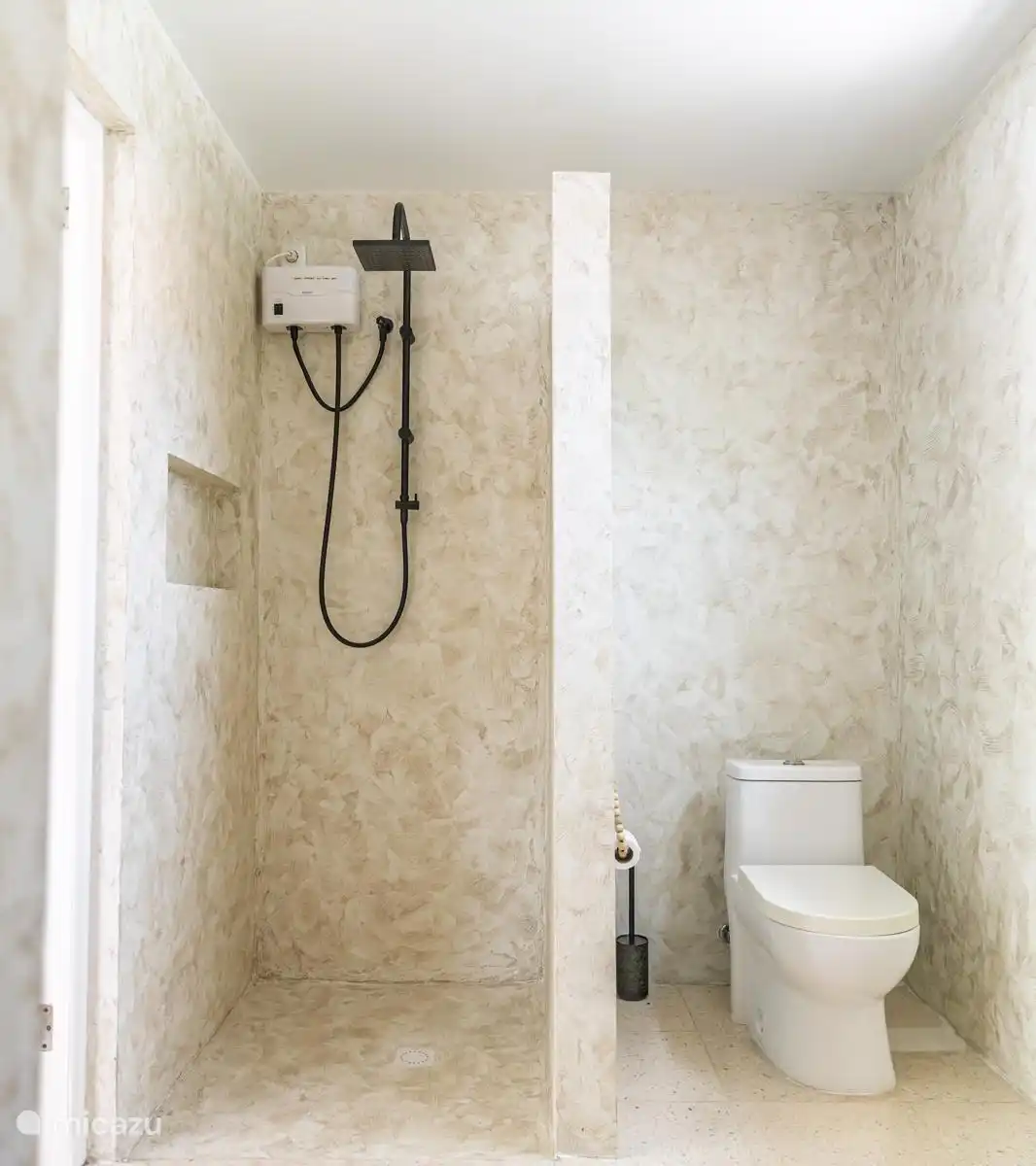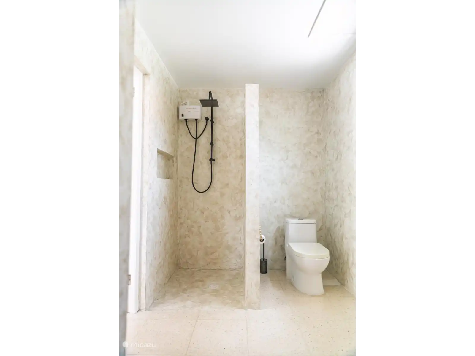 Het appartement bestaat uit een ruime keuken en sfeervolle woonkamer met plafond ventilator en smart tv die aansluit op een overdekt zitje. Daarnaast heeft het appartement een privé tuin waarin u heerlijk kunt genieten van de zon of een plekje in de schaduw. De keuken is uitgerust met benodigde apparatuur, een Amerikaanse koelkast en een gezellige eetbar. Daarnaast heeft het appartement 2 slaapkamers. De master bedroom heeft een comfortabele Queensize boxspring, pillow menu en airconditioning, zodat u altijd kunt genieten van een aangename temperatuur. In de tweede slaapkamer bevindt zich een boxspring die, indien gewenst, in twee losse bedden kan worden gesplitst en is ook uitgerust met airconditioning. De badkamer heeft een regendouche (warm en koud water), toilet en wastafelmeubel. Door het gehele appartement bevinden zich zowel 110v als 220v stopcontacten.