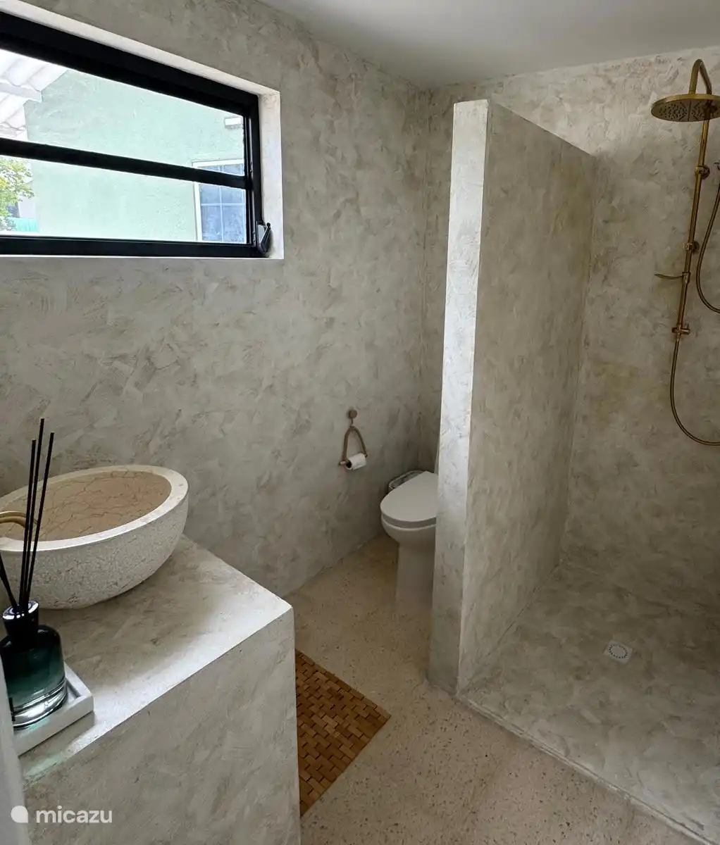 Het appartement bestaat uit een ruime keuken en sfeervolle woonkamer met plafond ventilator en smart tv die aansluit op een overdekt terras. In de woonkamer bevindt zich een ruime slaapbank met een extra topper voor meer slaapcomfort. De keuken is uitgerust met benodigde apparatuur en een gezellige eetbar. Daarnaast heeft het appartement 1 slaapkamer met comfortabele Queensize boxspring, pillow menu en een airconditioning, zodat u altijd kunt genieten van een aangename temperatuur. De badkamer, die zich direct naast de slaapkamer bevindt, is uitgerust met een regendouche (warm en koud water), toilet en wastafelmeubel. Door het gehele appartement bevinden zich zowel 110v als 220v stopcontacten.