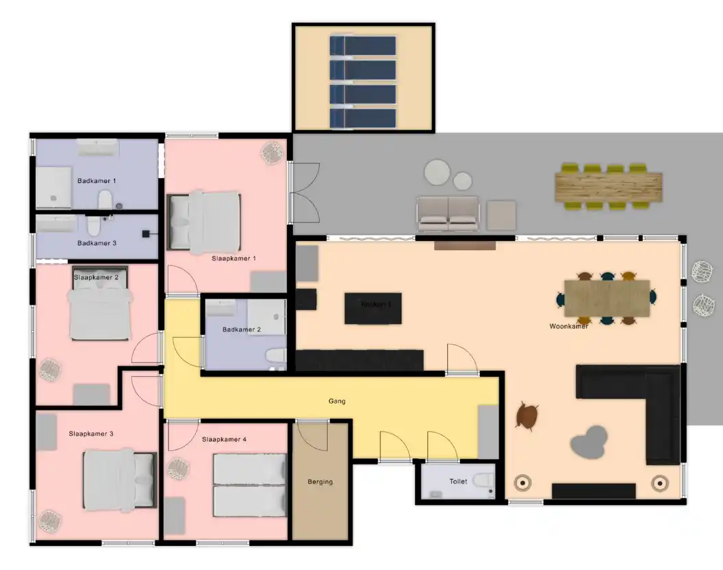 • Vier comfortabele slaapkamers, voorzien van airconditioning en extra lange boxspringbedden (210 cm)