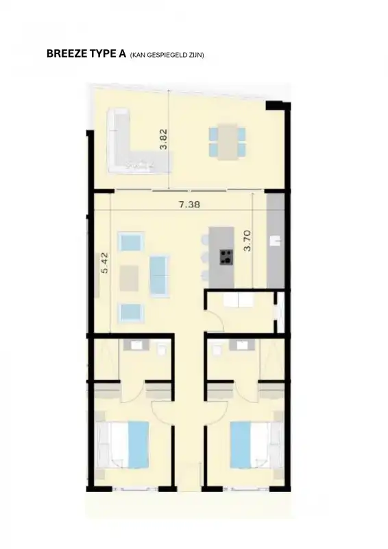Het appartement is geschikt voor 5 personen en van alle gemakken voorzien. Denk aan een sfeervolle woonkamer met tv en schuifpui naar het terras, een moderne open keuken met kookeiland, vaatwasser, grote Amerikaanse koelkast, broodrooster, tosti-ijzer en oven/magnetron. Airconditioning en plafondventilatoren zorgen overal voor een aangenaam klimaat. Er is een koffieapparaat en Nespresso aanwezig.