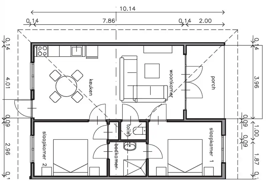 2 slaapkamers met airco en plafondventilator, een gedeelde badkamer met regendouche, warm water, een wastafel en een wasmachine. Het toilet bevind zich separaat ligt in de woonkamer. Via openslaande deuren bereikt u een deels overdekt privéterras.