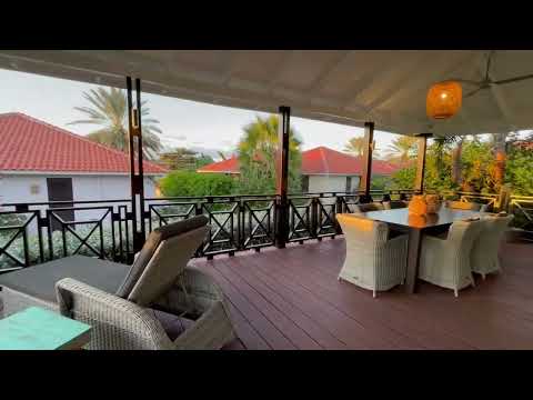 The Bluebay Beachvilla kent een bohemian sfeer en heeft drie slaapkamers met ruimte voor zes personen. De eerste en tweede slaapkamer beschikken over een prachtig king-size boxspring bed (210x 180) met een eigen badkamer. De derde slaapkamer wordt gekenmerkt door twee 1-persoonsbedden (200x80 cm). Daarnaast bescchikt de villa over een gastentoilet. De vrijstaande beachvilla biedt veel privacy en is van alle moderne gemakken voorzien; waaronder een compleet uitgeruste open keuken met bar, een riante woonkamer met aansluitend een zeer ruime veranda met sfeervolle verlichting. Wanneer je de tuindeuren opent, creëer je een mooie verbinding tussen binnen en buiten en kijk je uit op een kleurrijke tropische tuin en de Blue Bay Golfcourse. De hoge plafonds geven een extra ruimtelijk effect aan de villa en de plafondventilators in de woonkamer en op de veranda zorgen voor een verkoelende wind. Alle slaapkamers zijn voorzien van airconditioning. De keuken is uitgerust met SMEQ toaster en waterkoker, Nespresso koffiemachine met melkschuimer en een Bosch blender waar je heerlijke smoothies mee kunt maken. Op 250 meter afstand van The Blue Bay Beachvilla ligt het strand en gasten krijgen bij het verblijf een strandpas waarmee je gratis toegang hebt tot het strand en gratis gebruik kunt maken van de strandbedden. Op 150 meter afstand van The Blue Bay Beachvilla ligt een zwembad dat tot in de avond open is.