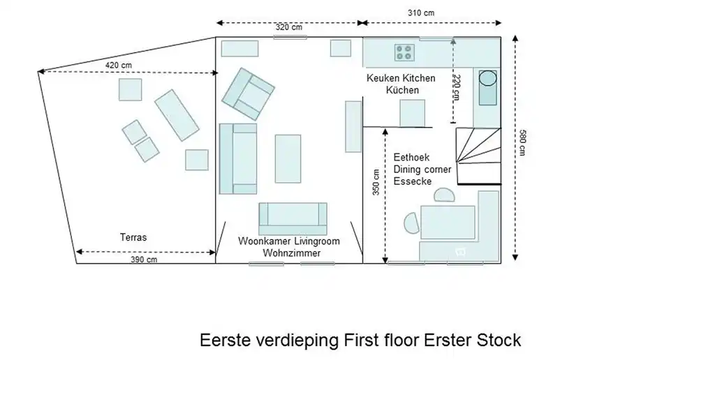 Bijkomstige kosten: € 45,- euro voor eindschoonmaak en € 100,- borg.