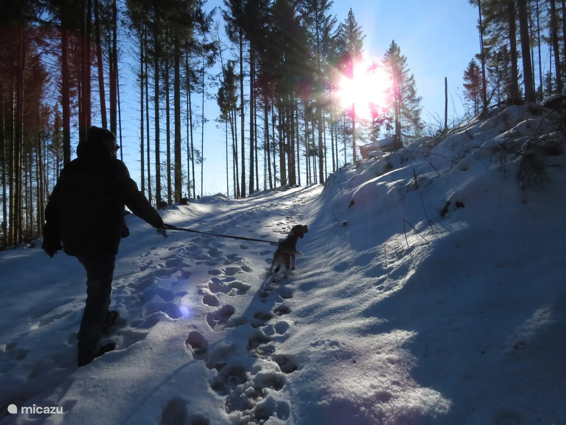 Op loopafstand van de vakantiewoning begint het bos. In de winter met sneeuw is het bijna magisch.. zo mooi, en in de zomer heerlijk groen. Ook de herfstkleuren maken deze omgeving bijzonder mooi..