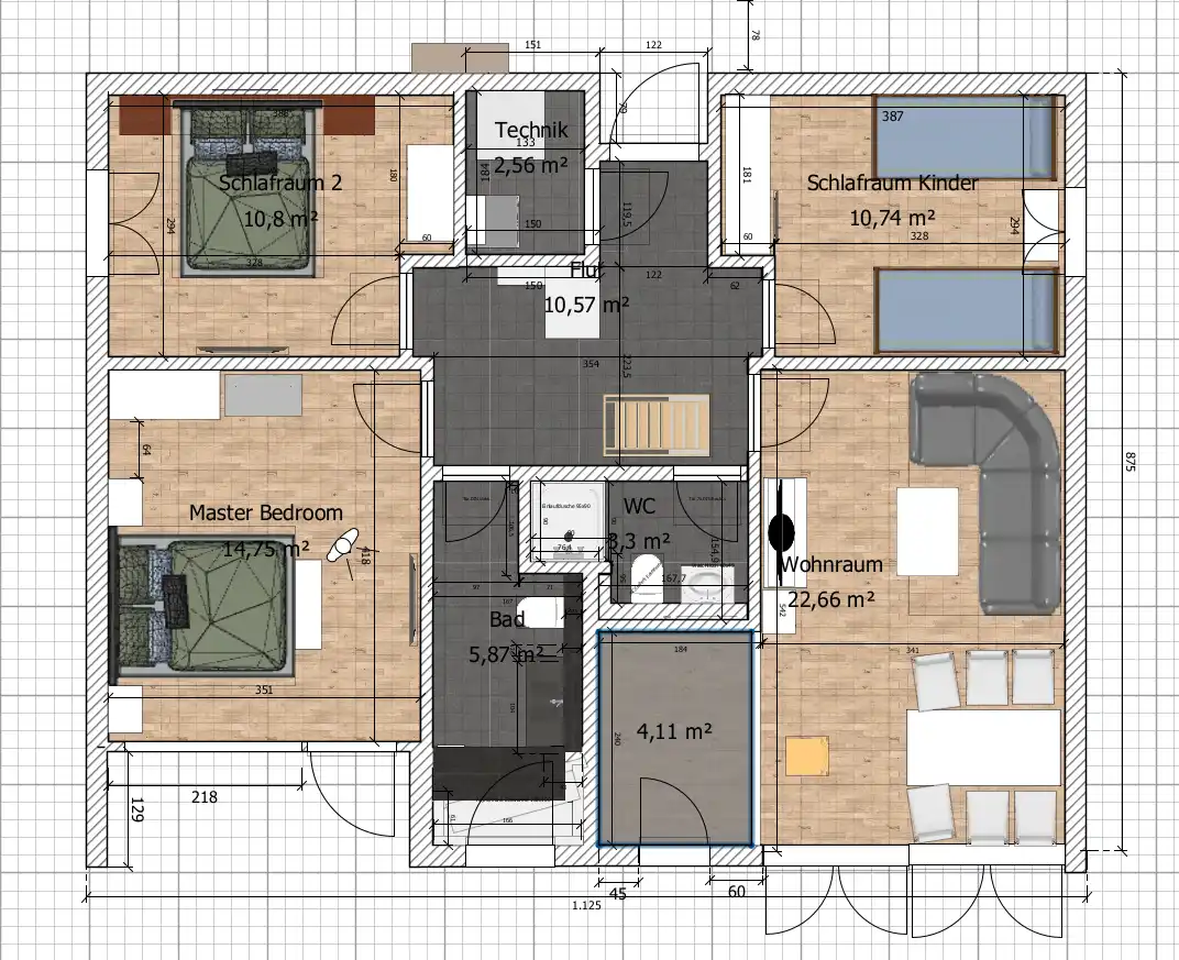 Het huis wordt verwarmd door vloerverwarming, die wordt aangedreven door een moderne warmtepomp met een PV- en thermozonnepaneel.