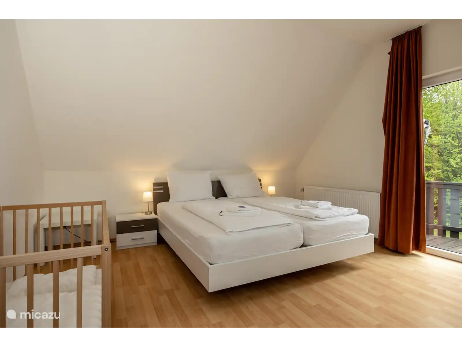 Bed: 2-persoons 200 x 180 cm