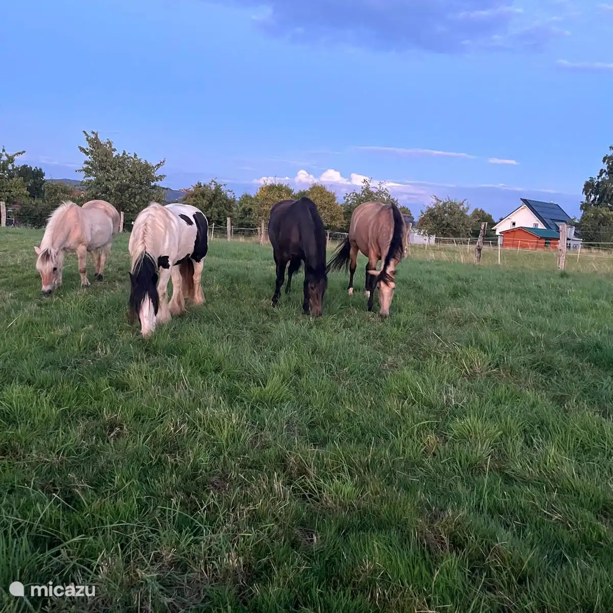 Er is een paardenweide aanwezig met een schutstal en watervoorraad. In overleg kunnen wij hooi regelen tegen een vergoeding. Bij de paardenweide is ruimte voor 3 paardentrailers. Bij de vakantiewoning is plek voor 3 auto’s op de oprit en zijn er nog parkeerplaatsen aan de straat.