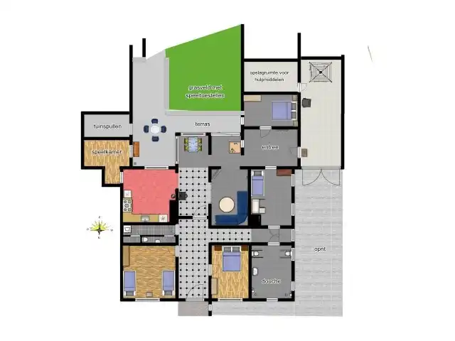 Uiteraard zijn er geen drempels in het huis en in het woongedeelte brede doorgangen zonder deuren.