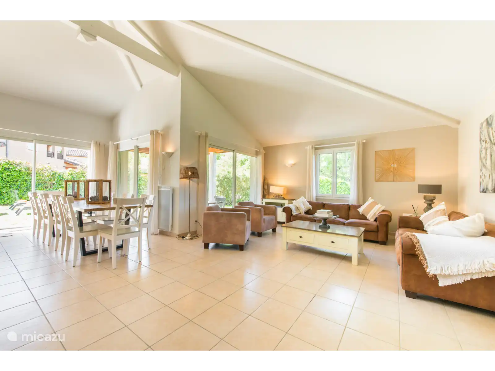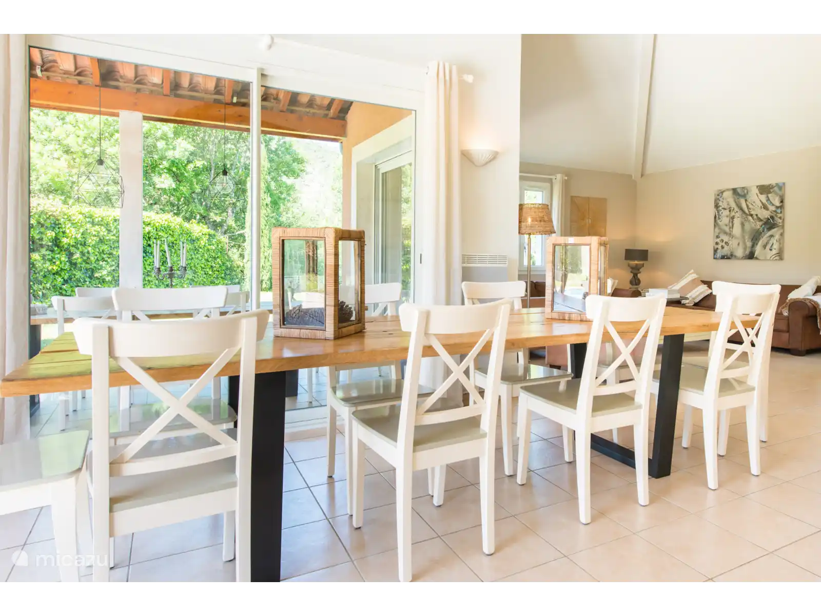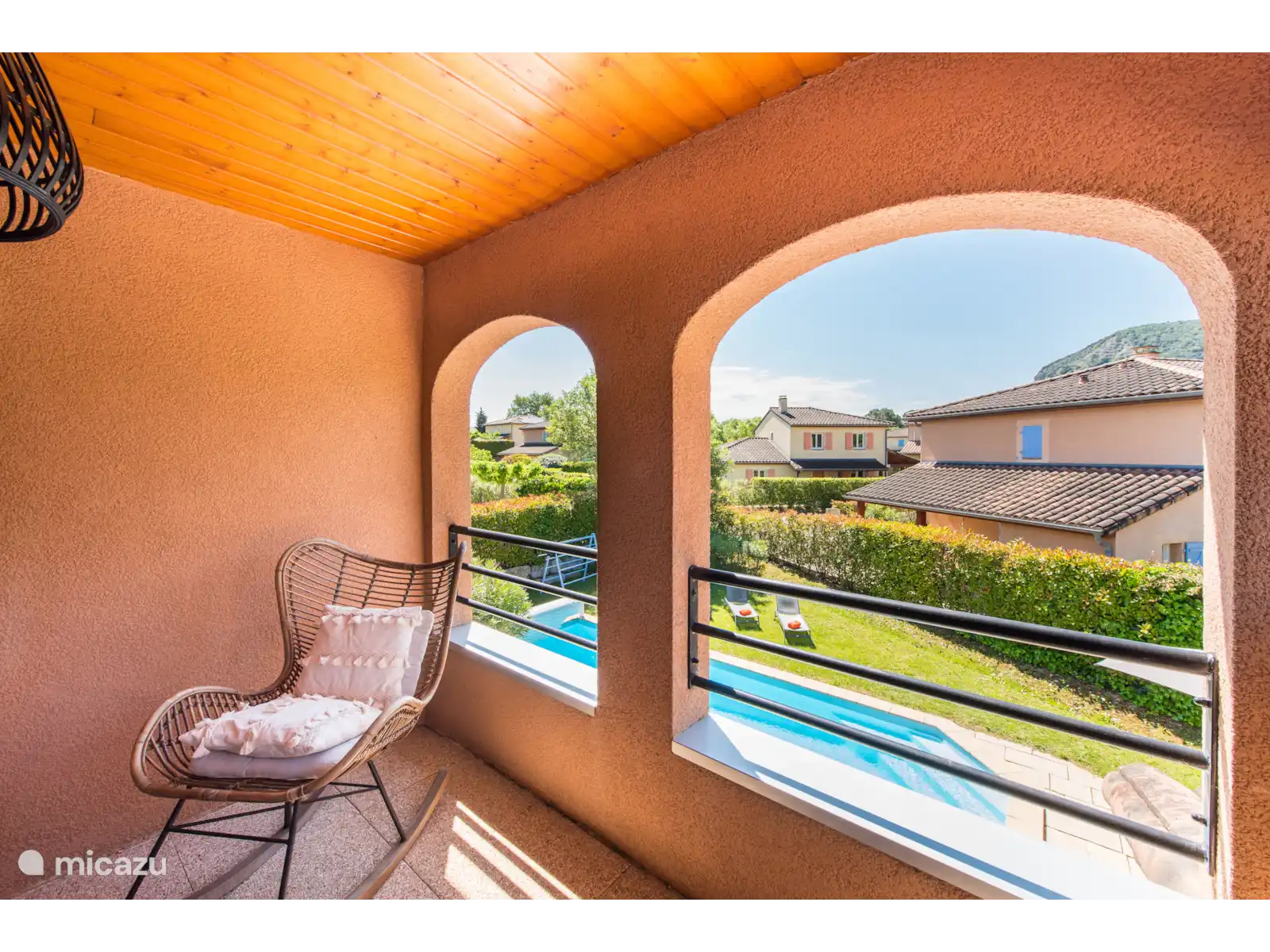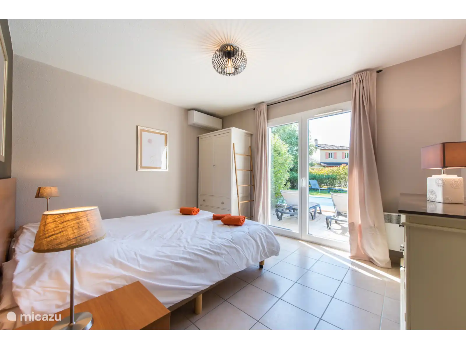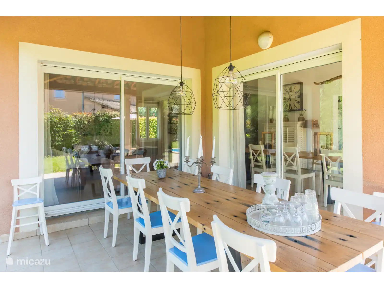 Buiten: Groot gazon met verwarmbaar privézwembad van 10 x 4 m. De zwembadverwarming kan bijgeboekt worden (extra kosten) en het zwembad is open van april tot en met oktober. Het overdekte terras is ideaal om buiten te kunnen eten of te genieten van een goed glas Franse wijn. In de tuin is een extra zitje gemaakt voor een extra schaduwplek.Er is parkeerruimte op eigen terrein en u kunt gebruik maken van de nieuw geïnstalleerde laadpaal (extra kosten).