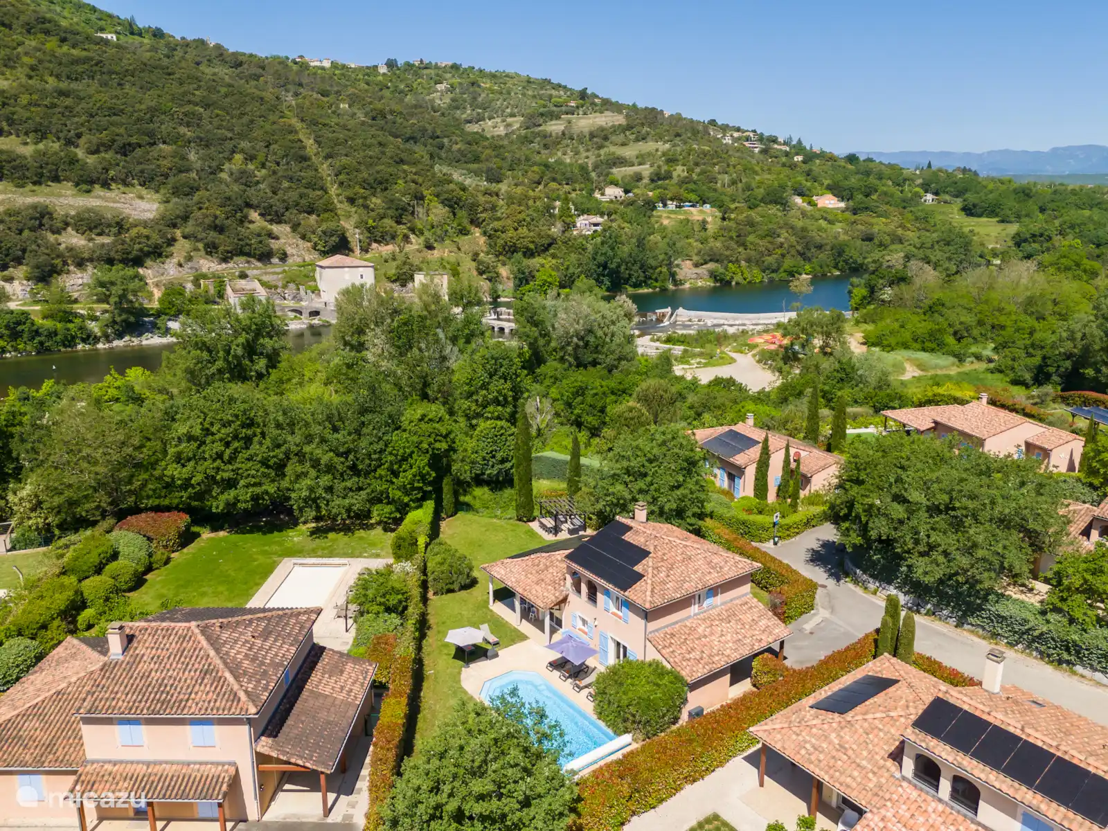 Deze villa is gelegen op het park Domaine Les Rives de l'Ardeche. Het park ligt op een prachtige locatie, aan de rivier de l'Ardeche. Op het park vindt u diverse gemeenschappelijke faciliteiten waaronder een groot zwembad met kinderbadje en tennisbanen, waar u kosteloos gebruik van kunt maken. U vindt meer informatie over het park hier!