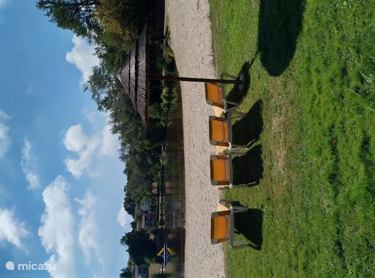 De auto kan geparkeerd worden bij het huisje (aan de overkant van de straat) bij de speeltuin.
