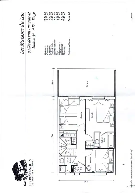 De bovenverdieping bestaat uit: Douche/WC, 1 slaapkamer met 2 bedden (90cm,lengte 190 cm) 1 slaapkamer met 2 bedden (90 cm, lengte 190 cm) en airco, 1 masterslaapkamer met 2 persoonbed (1 x 180cm, 1 x 200 cm), Aansluitend badkamer met bad en wastafel, tv en airco. Beide slaapkamers met terras.