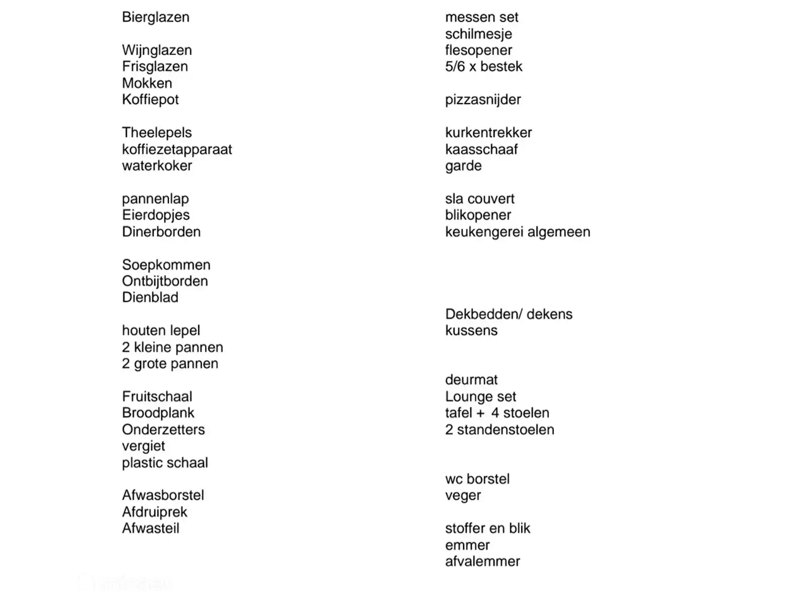 U dient zelf hoeslakens, dekbedovertrekken, kussenslopen en handdoeken mee te nemen.Mocht u het niet zelf mee willen nemen, dan kan het terplekke gehuurd worden via beheerders op de camping:hoeslakens, dekbedovertrekken en kussenslopen. €12,- per persoon.Handdoeken pakket €12,-Er kan terplekke aangegeven worden of u hiervan gebruik wilt maken, en ook terplekke kan afgerekend worden bij de beheerders.