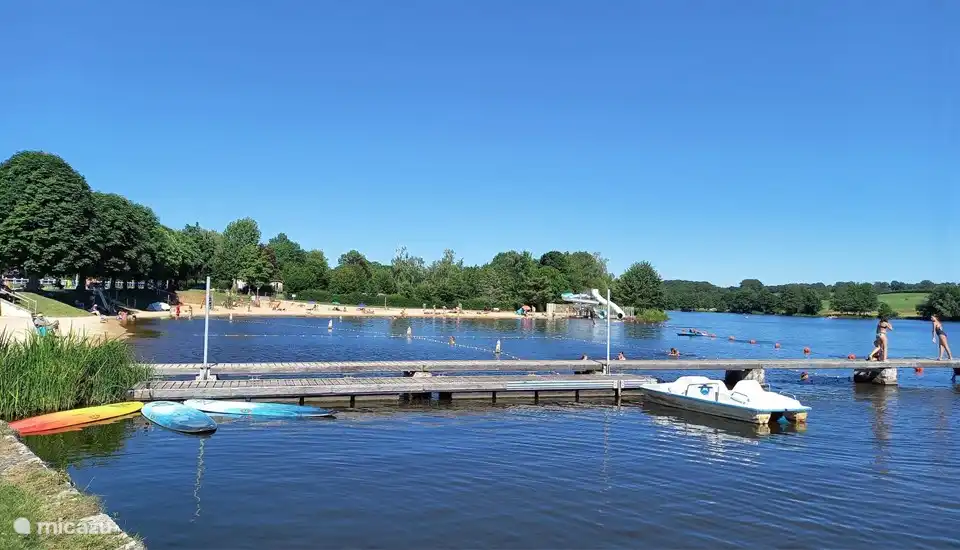 Aan het meer ligt een groene en rustige Huttopia camping, waar leuke activiteiten georganiseerd worden en waar (elektrische) fietsen gehuurd kunnen worden. In het campingrestaurant mag iedereen eten. Doordat Moulin Fouché tegen de dijk aan is gebouwd - en zich dus min of meer onder het waterniveau bevindt - gaan de geluiden van de campinggasten én van de mensen in het water en aan het strandje veelal over u heen. Daardoor kunt u bij uw huisje genieten van uw welverdiende rust en de natuur.