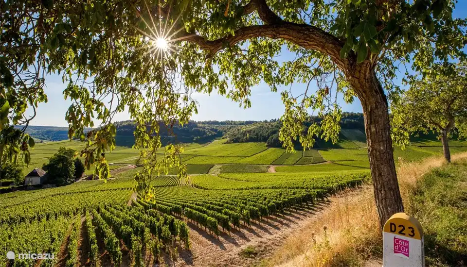 Het departement Côte d’Or en de regio Bourgogne-Franche-Comté hebben veel te bieden! Het landschap is glooiend en vormt een lappendeken van graanvelden, weilanden, wijngaarden en bossen. In de lente bloeit het koolzaad op de velden en in de zomer zie je overal zonnebloemen. Er liggen veel bezienswaardige plaatsen in de buurt. Dijon, Beaune, Semur-en-Auxois, Autun en Saulieu beschikken niet alleen over leuke winkels en gezellige terrasjes, maar ook over interessante musea. Eén van de mooiste dorpen van Frankrijk - Châteauneuf-en-Auxois - ligt op een steenworp afstand van Arnay-le-Duc. In de Bourgogne zijn tientallen imposante kastelen te bezoeken. Ook vind je er interessante musea, fraaie abdijen, oude kerken en grote kathedralen. De beste wijnen van de wereld komen uit de Bourgogne en de Côte d’Or. Na een half uur rijden sta je midden in de wijnstreek.