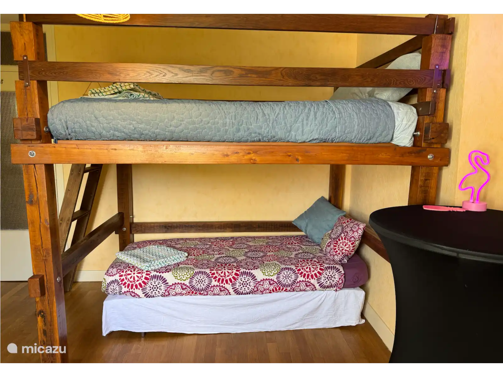• Tweepersoons stapelbed met eenpersoonsbed (Paarse kamer)