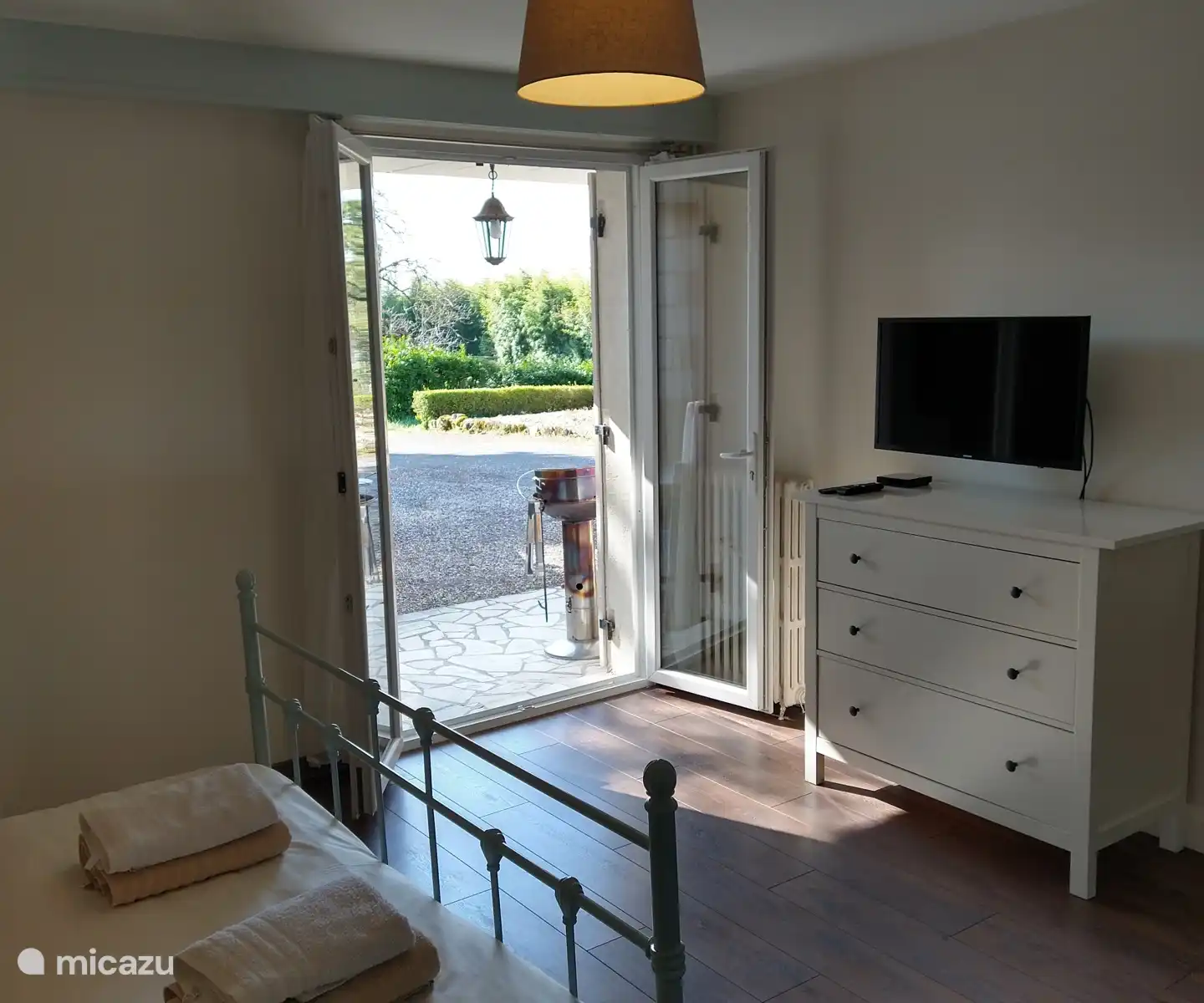 Gîte Chez Julie beschikt over twee slaapkamers: een ruime kamer met een comfortabel queen-size tweepersoonsbed en een tweede kamer met een stapelbed, perfect voor kinderen of extra gasten. De badkamer is praktisch ingericht met een douche, wastafel en toilet. De keuken is volledig uitgerust, zodat u met gemak zelf kunt koken en samen kunt genieten van een ontspannen maaltijd. Vanuit de woonkamer of keuken loopt u zo naar buiten, waar een eigen terras met barbecue op u wacht. Dit is een heerlijke plek om ’s ochtends rustig te ontbijten of ’s avonds na een dag vol uitstapjes nog lang na te praten in de open lucht.