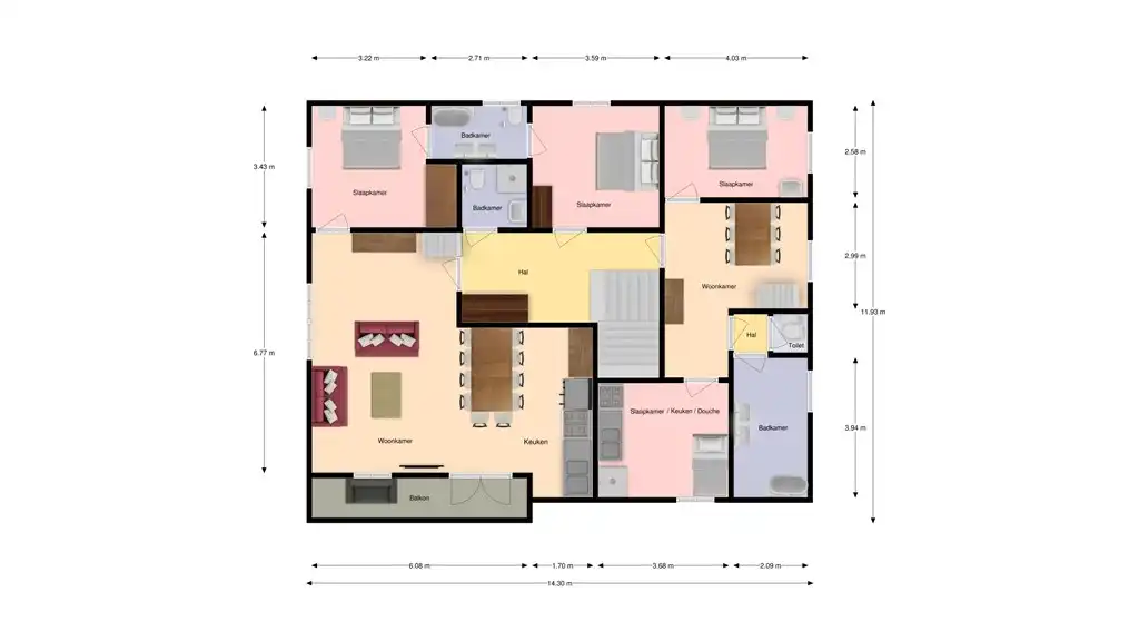 Er zijn twee volledig ingerichte keukens en een balkon op het zuiden van 14 m2.