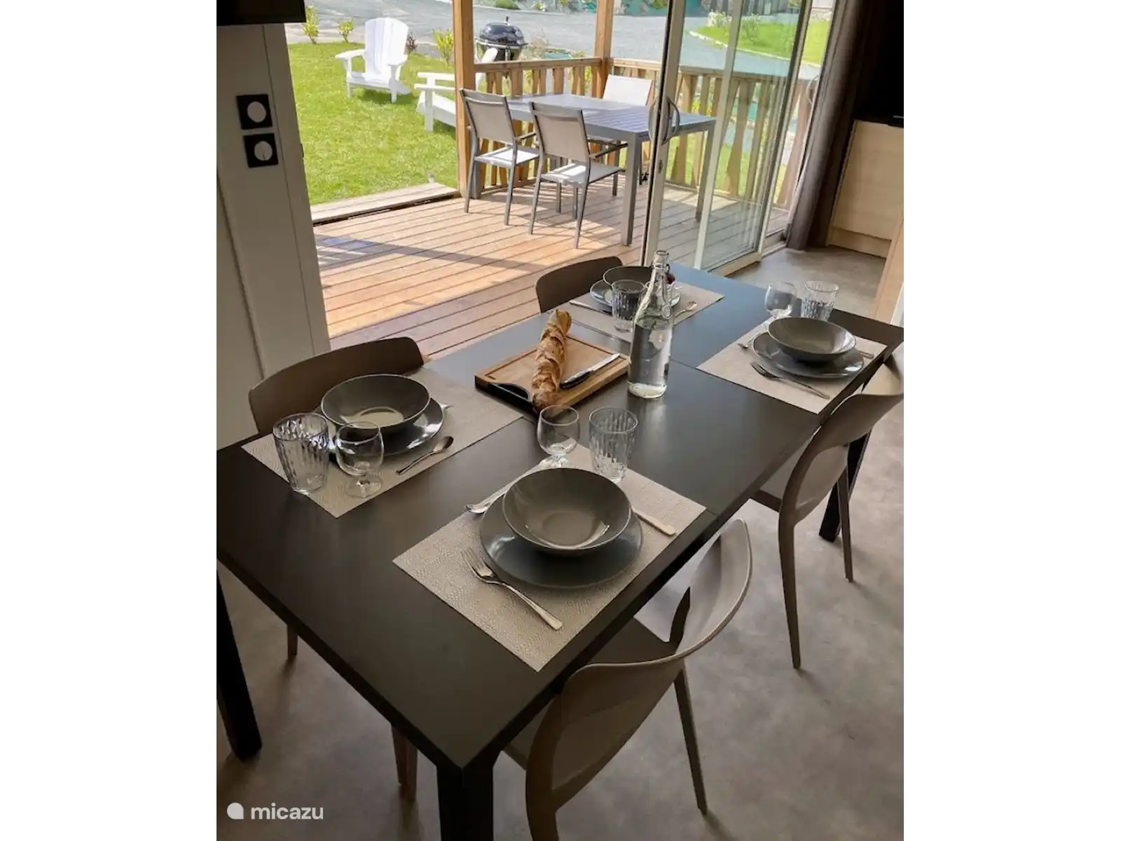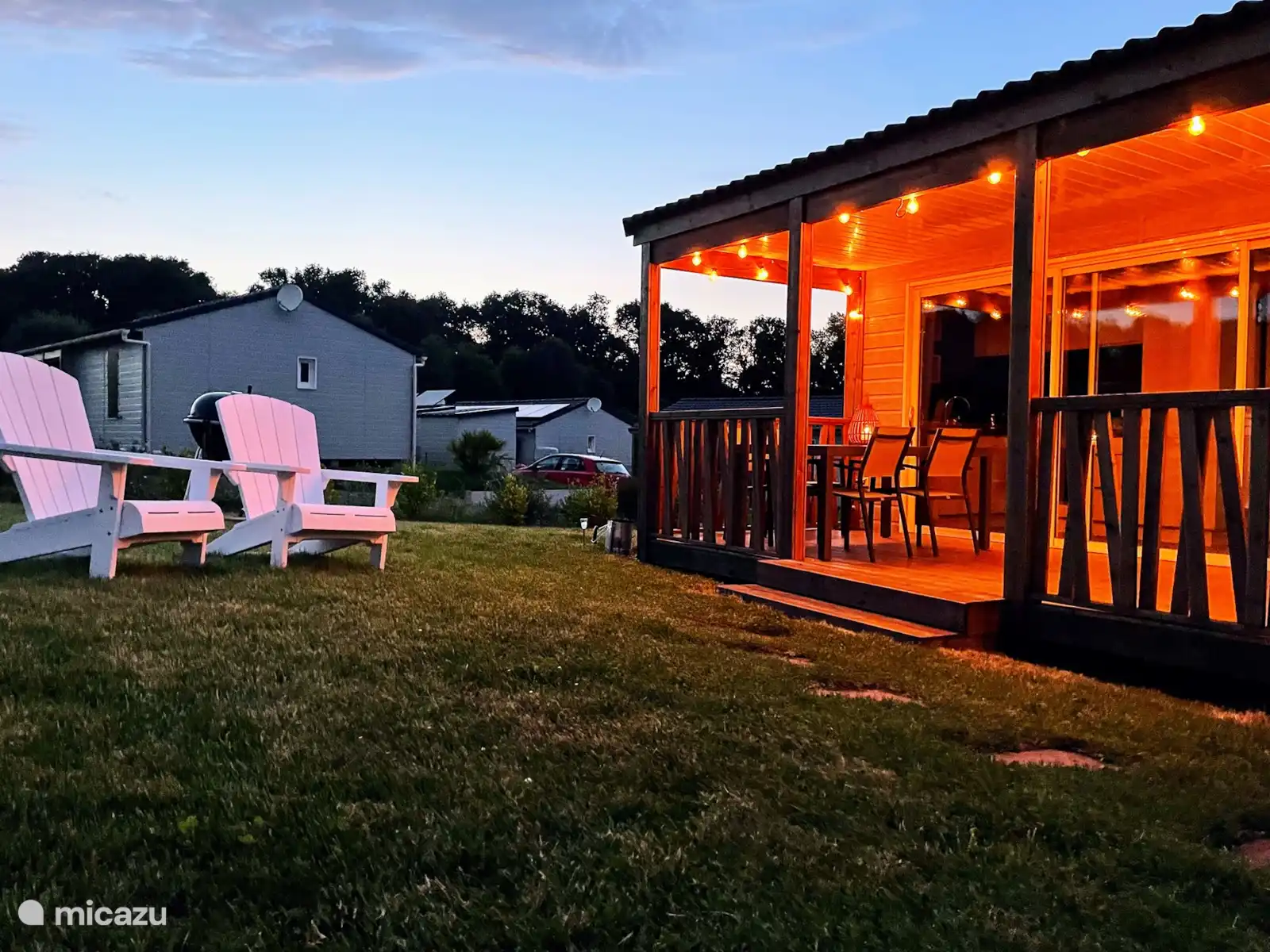 Het chalet heeft een heerlijk groot terras op het zuid-westen waar je uren kunt ontspannen, ontbijten, lunchen en dineren of de sterren bewonderen in alle rust van het park. De tuin is ideaal om fantastisch te relaxen in de lounge stoelen terwijl de kinderen heerlijk spelen of natuurlijk om heerlijk te barbecueën.