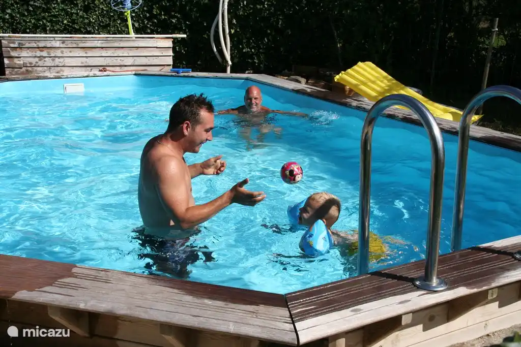 Er is een klein zwembad, wat heerlijk is voor de nodige waterpret op warme dagen. Het bad is ongeveer 1 meter diep. I.v,m veiligheid zien wij graag jonge kinderen onder toezicht van een ouders. Het bad is omheind. (wettelijke veiligheid voorschriften).