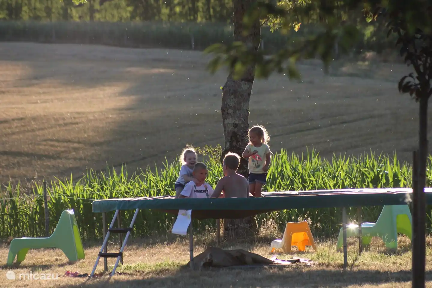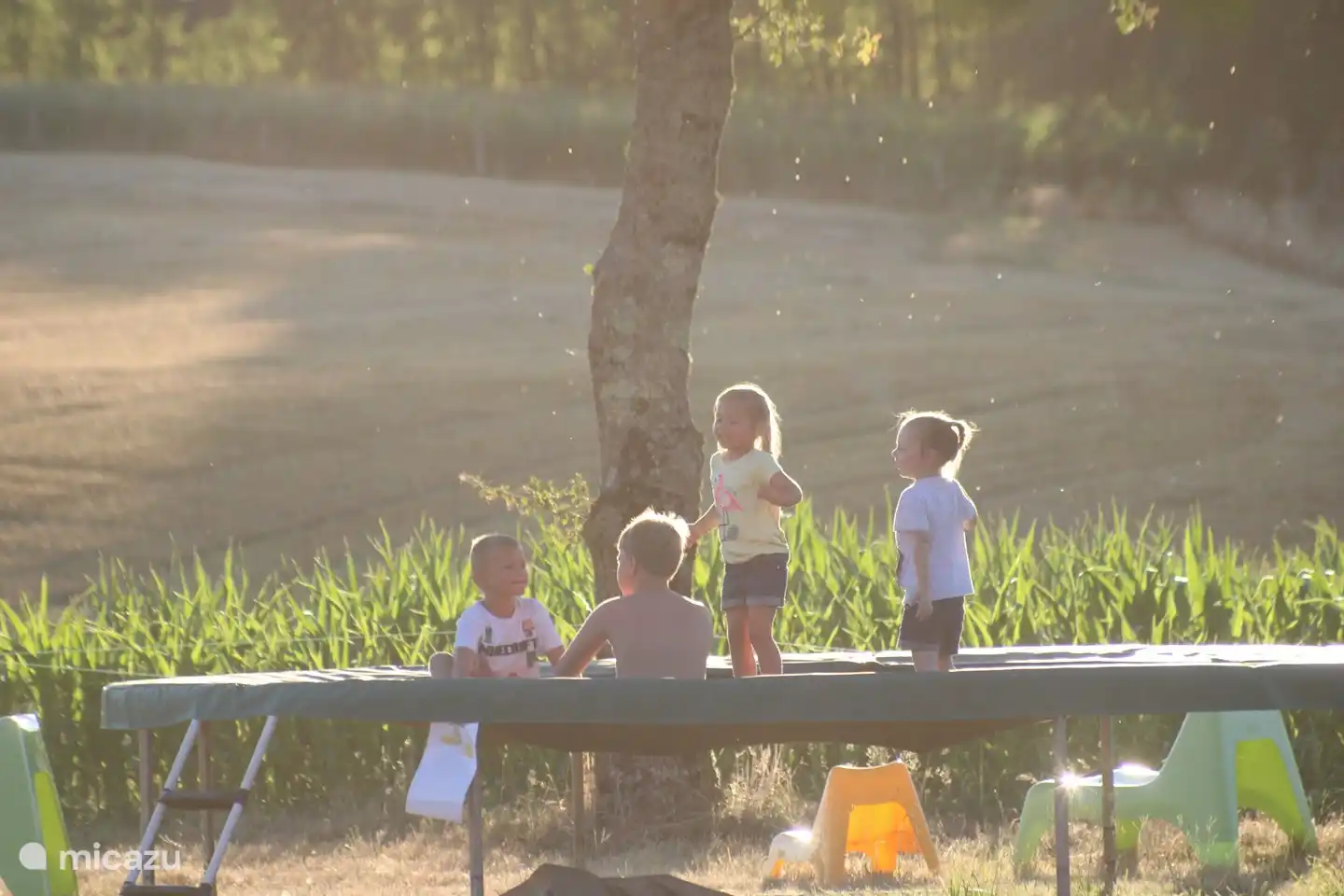 Er is een speelveld met trampoline en klim en klauter toestel voor de allekleinste.