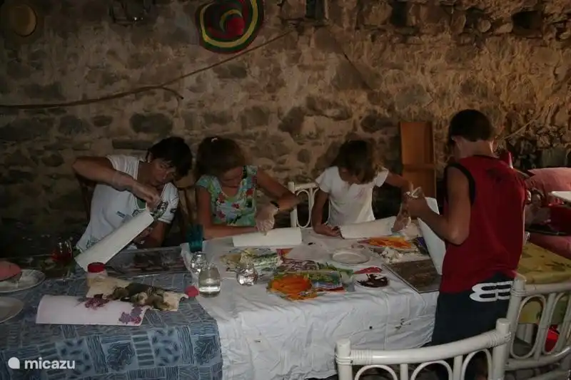 In de voormalige stal is er een binnen speelhoek voor de jongste, een spelletjes kast en boekenkast.