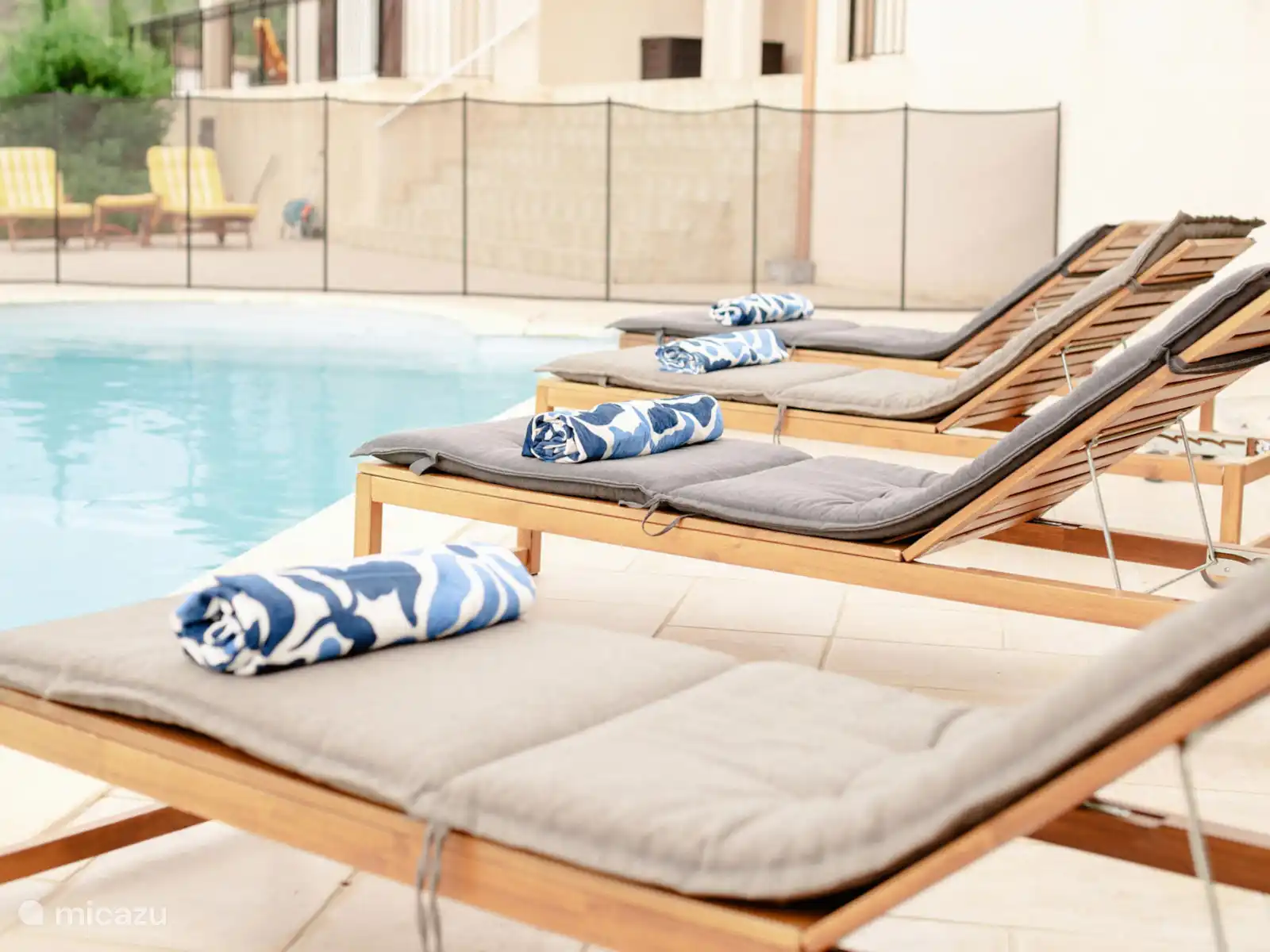 Bedlinnen, handdoeken, strandlakens, keukenlinnen, badjassen, babybed, kinderstoel, ventilator, extra parasols, verwarmd zwembad (maanden april en oktober)