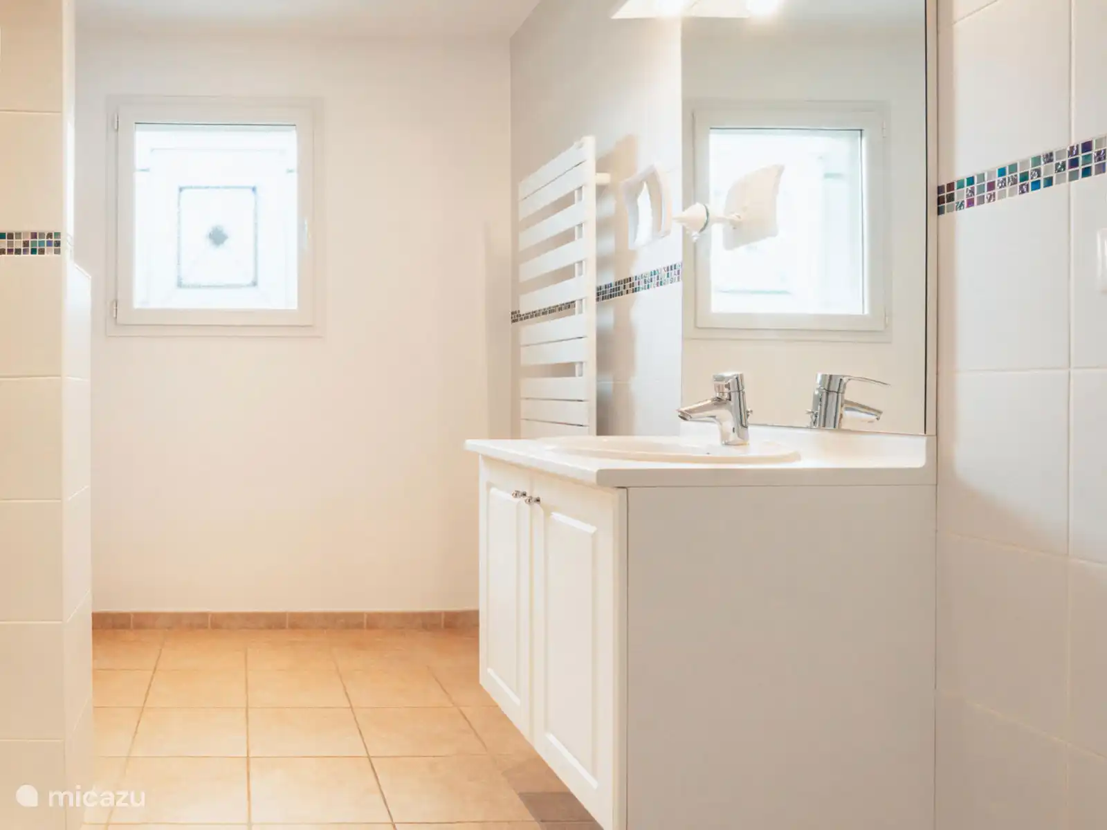 - Aparte badkamer met ligbad, wastafel, toilet, haardroger