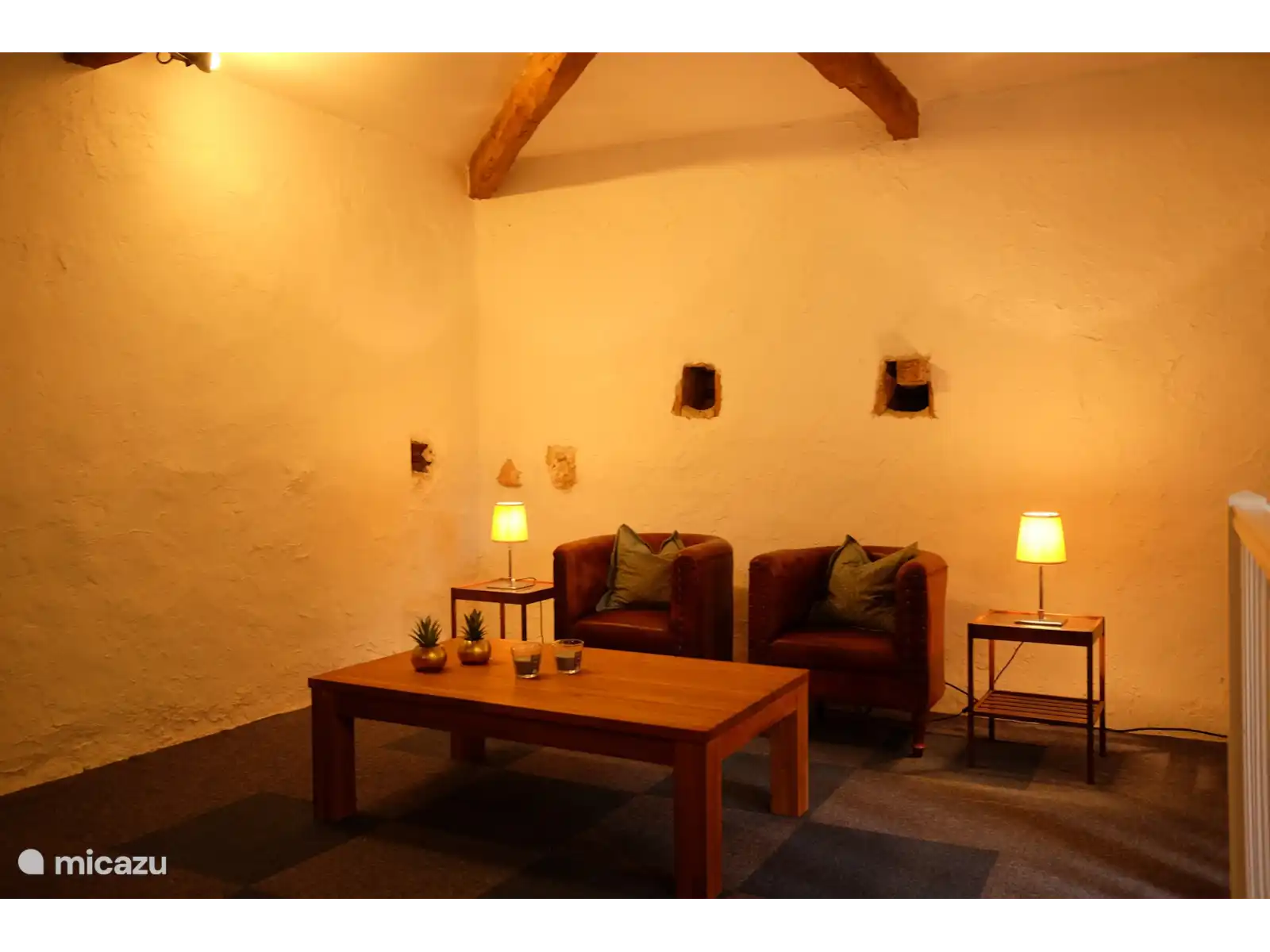 Gîte "Le Pigeonnier" is een gezellig vakantiehuis welke in de oude duiventoren gesitueerd is en los staat van het hoofdhuis. Via de authentieke voordeur komt men binnen in het woon- en keukengedeelte. De woonkamer heeft een rustieke schouw met houtkachel en een gezellig zitje. De originele muurkasten, diverse oude elementen en een spectaculair uitzicht uit het raam zorgen voor het echte Franse gevoel. Ontbijten aan de eettafel waarbij het raam fungeert als een levend schilderij… C’est la vie en France!