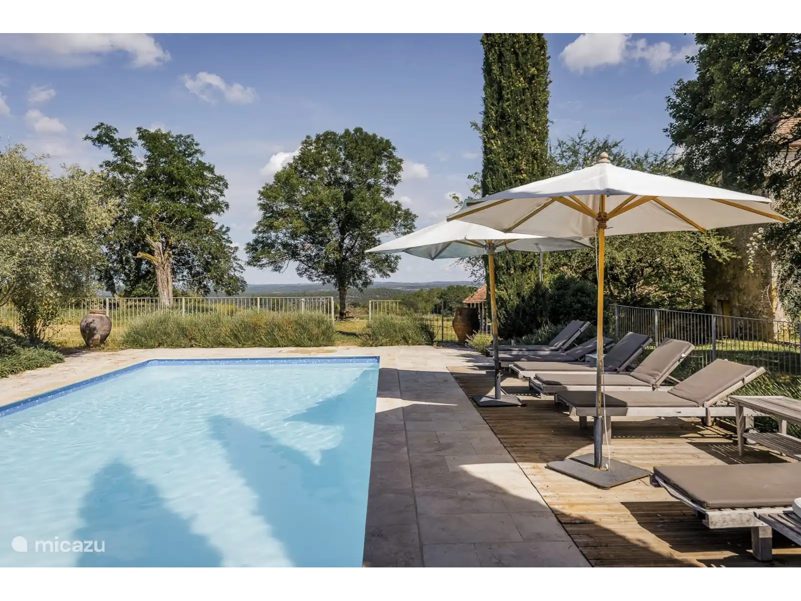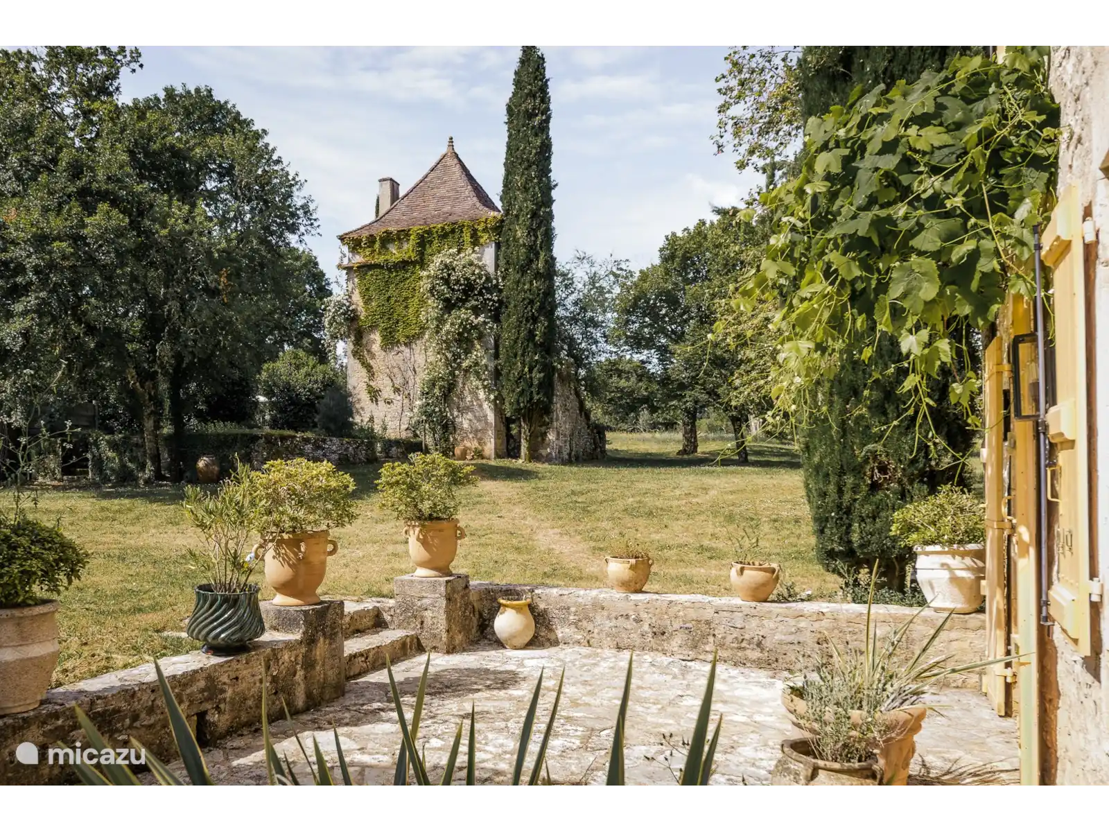Via een lange privé-oprijlaan bereikt u het huis en de pigeonnier. Natuurlijk is er bij het huis ruime parkeergelegenheid. Mas de Comtessa wordt omgeven door glooiende grasvelden, bos en vanuit uw prachtige terras kunt u genieten van de mooie, grote tuin. Naast de toren ligt de siertuin en het 11.5m x 5m verwarmde zwembad met veiligheidshek.U heeft tevens aan de achterzijde van het huis nog een fijn terras met een grote eettafel en stoelen. Natuurlijk zijn er voldoende ligstoelen en parasols bij het zwembad. Ook is er een tafeltennistafel, een jeu de boules baan en een BBQ.